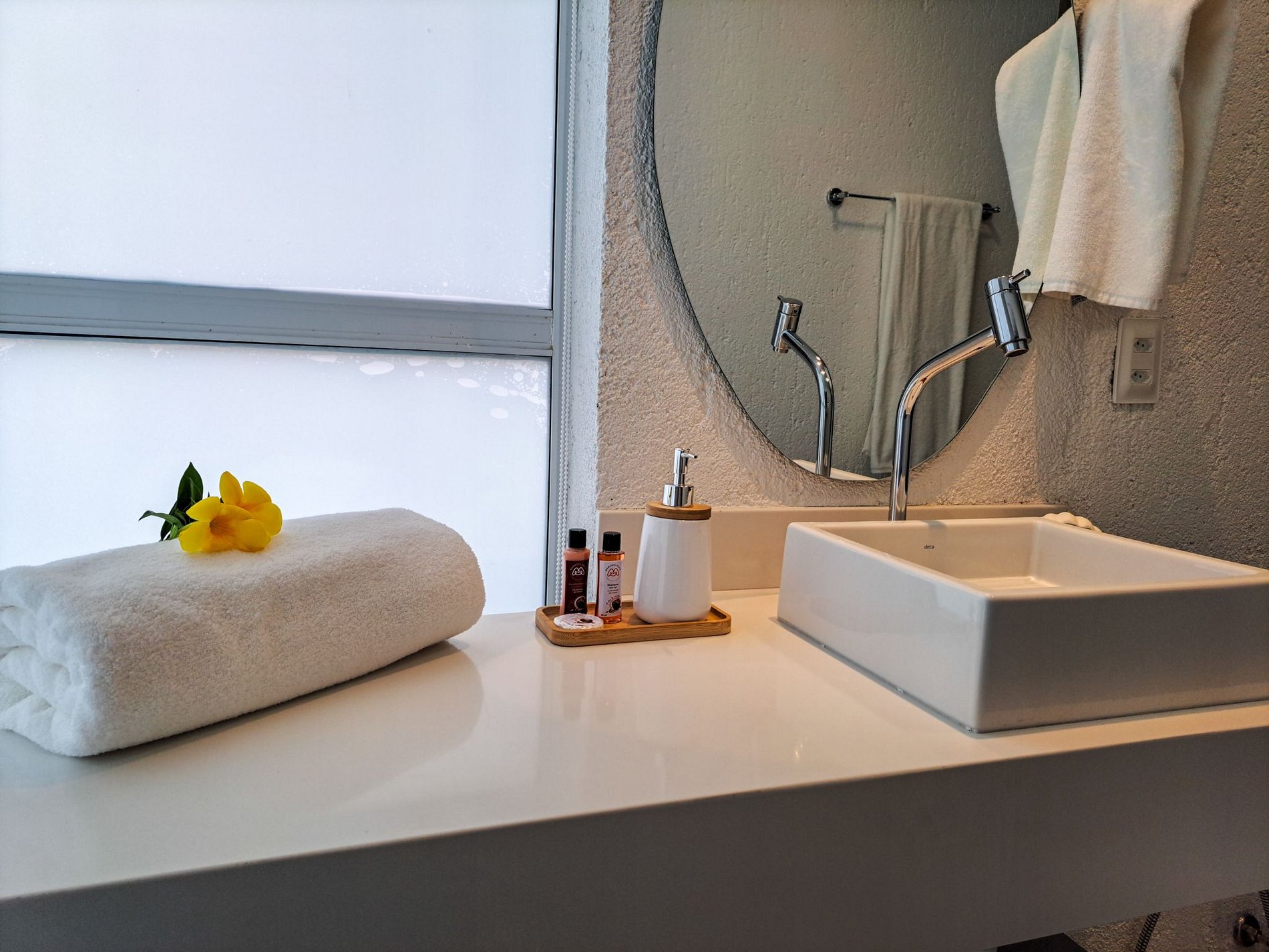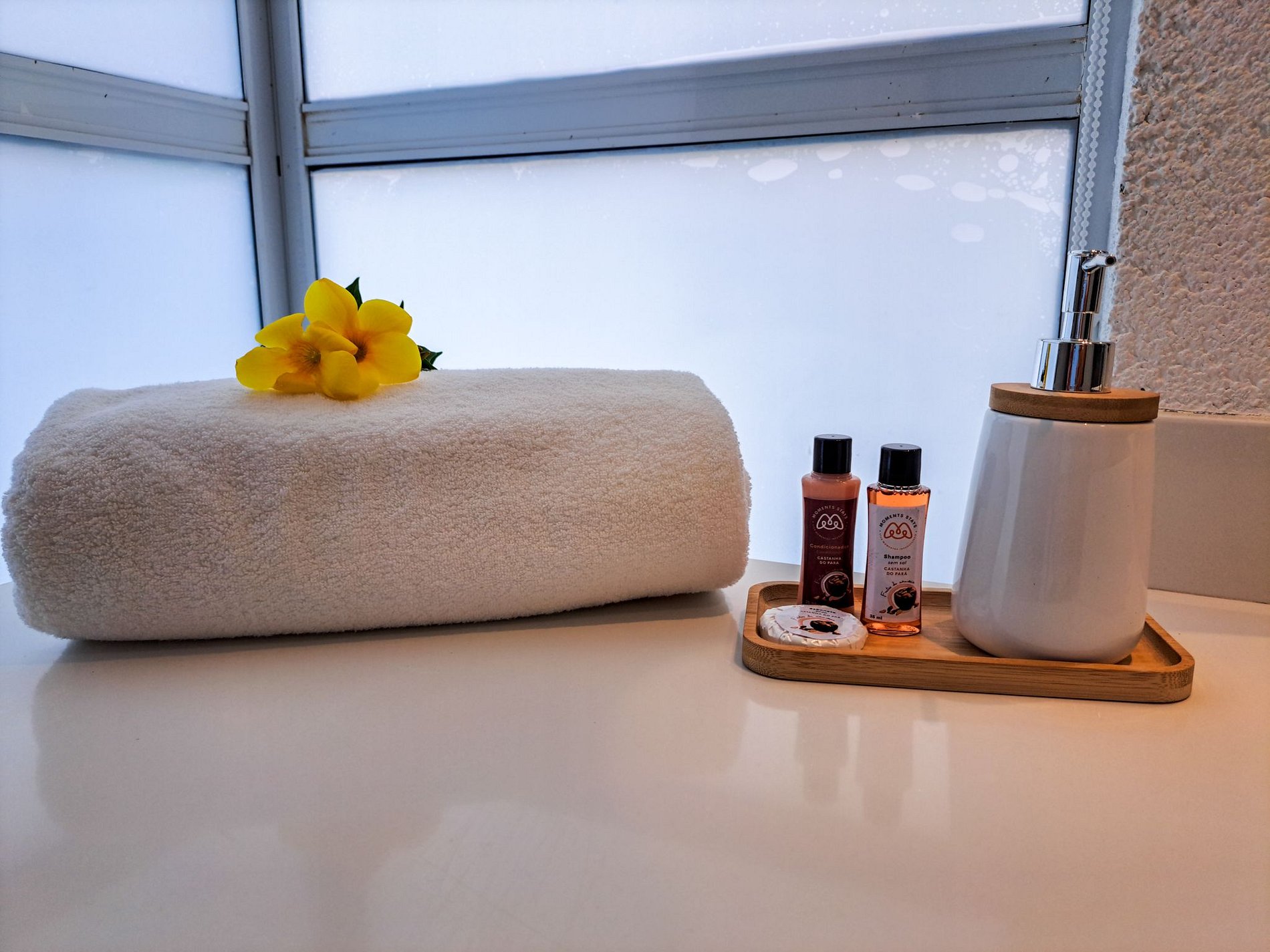 Included in your stay at check-in: 1 water, 1 detergent, 2 toilet paper rolls per bathroom, 1 sponge, garbage bag, 1 bath kit per suite (1 35ml bottle of shampoo + 1 35ml bottle of conditioner + 1 20g bar of soap).
