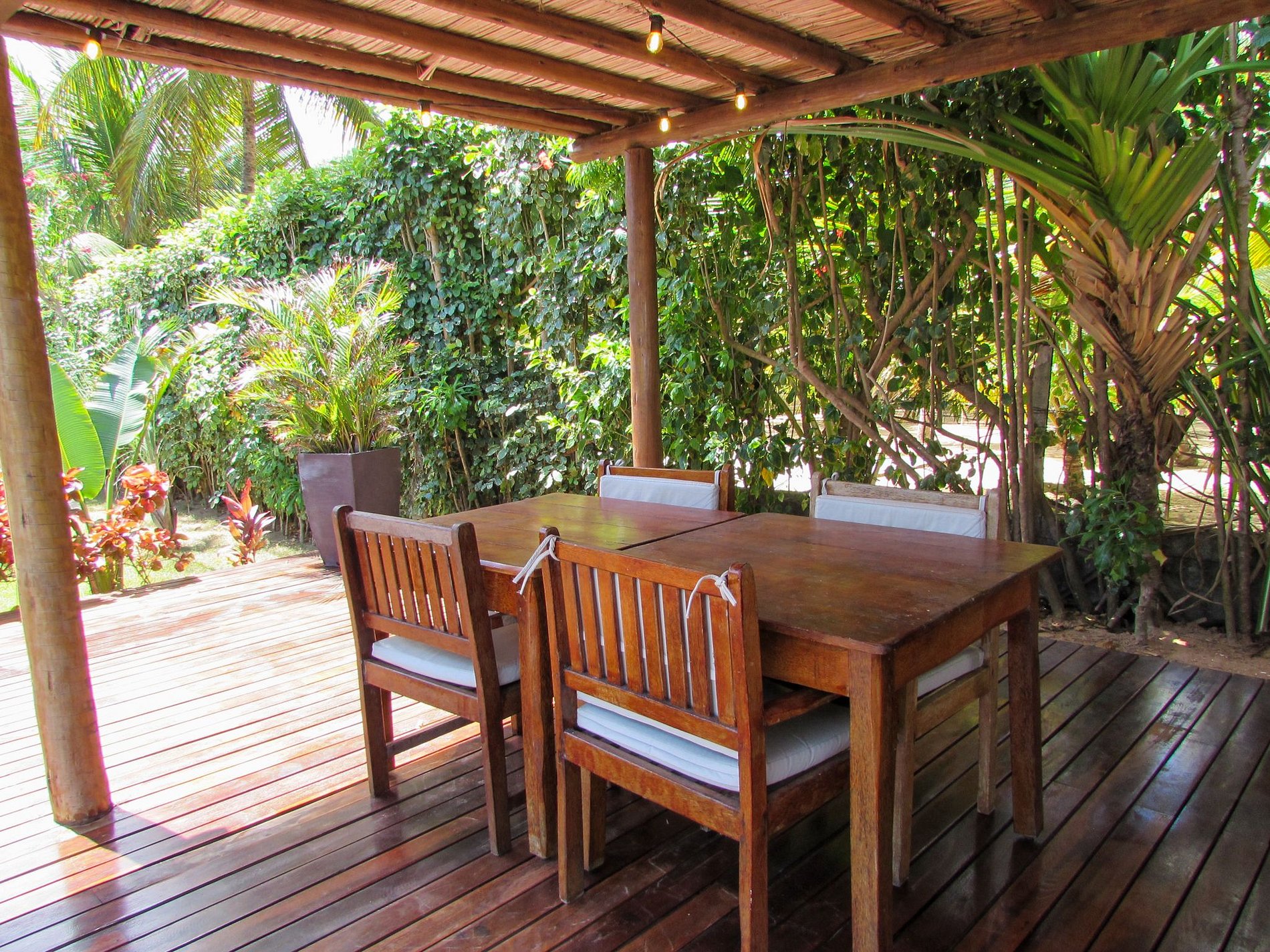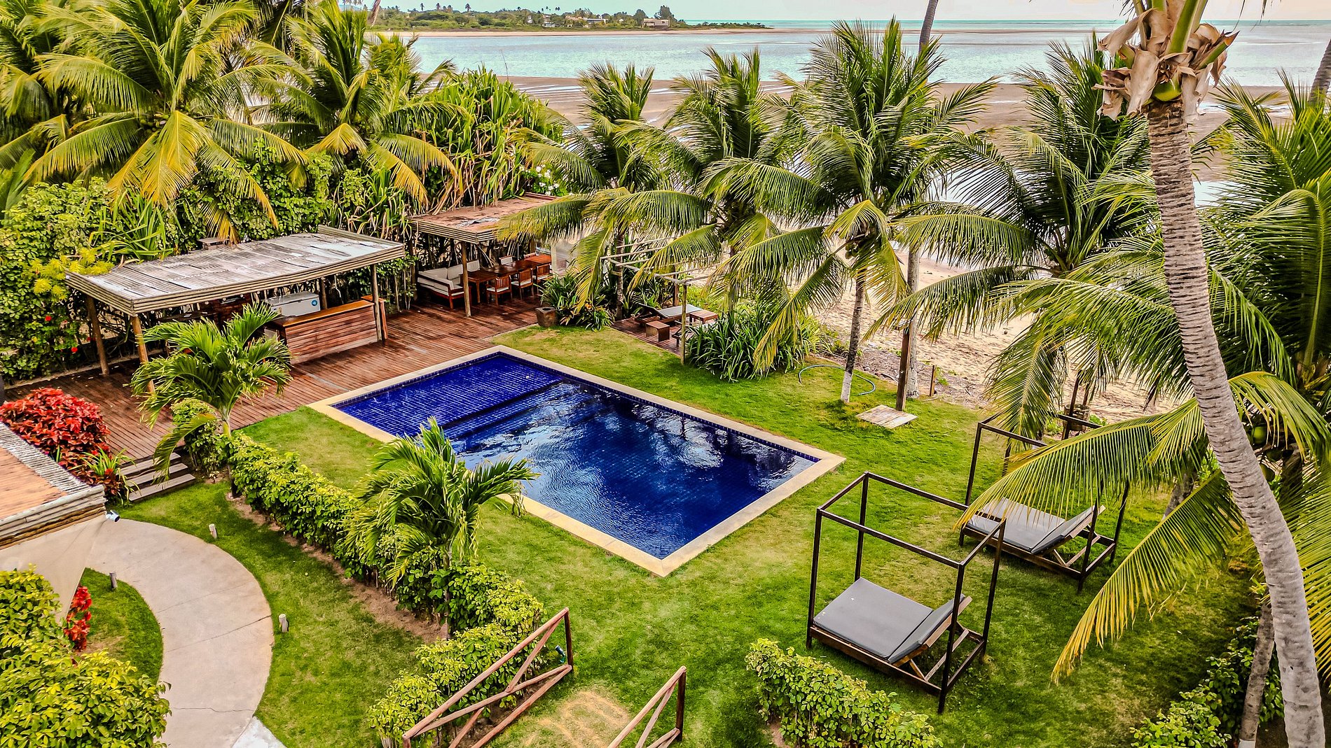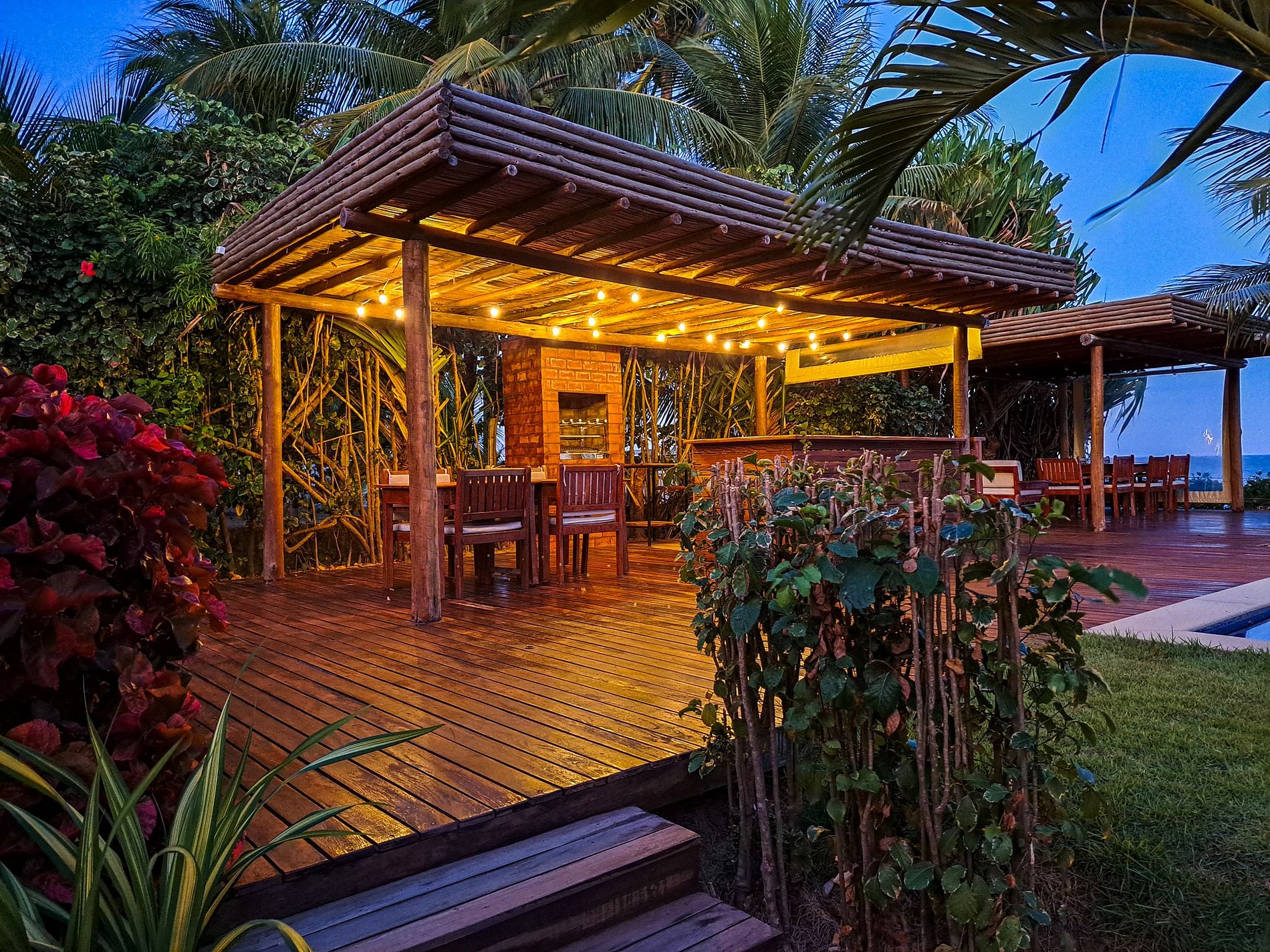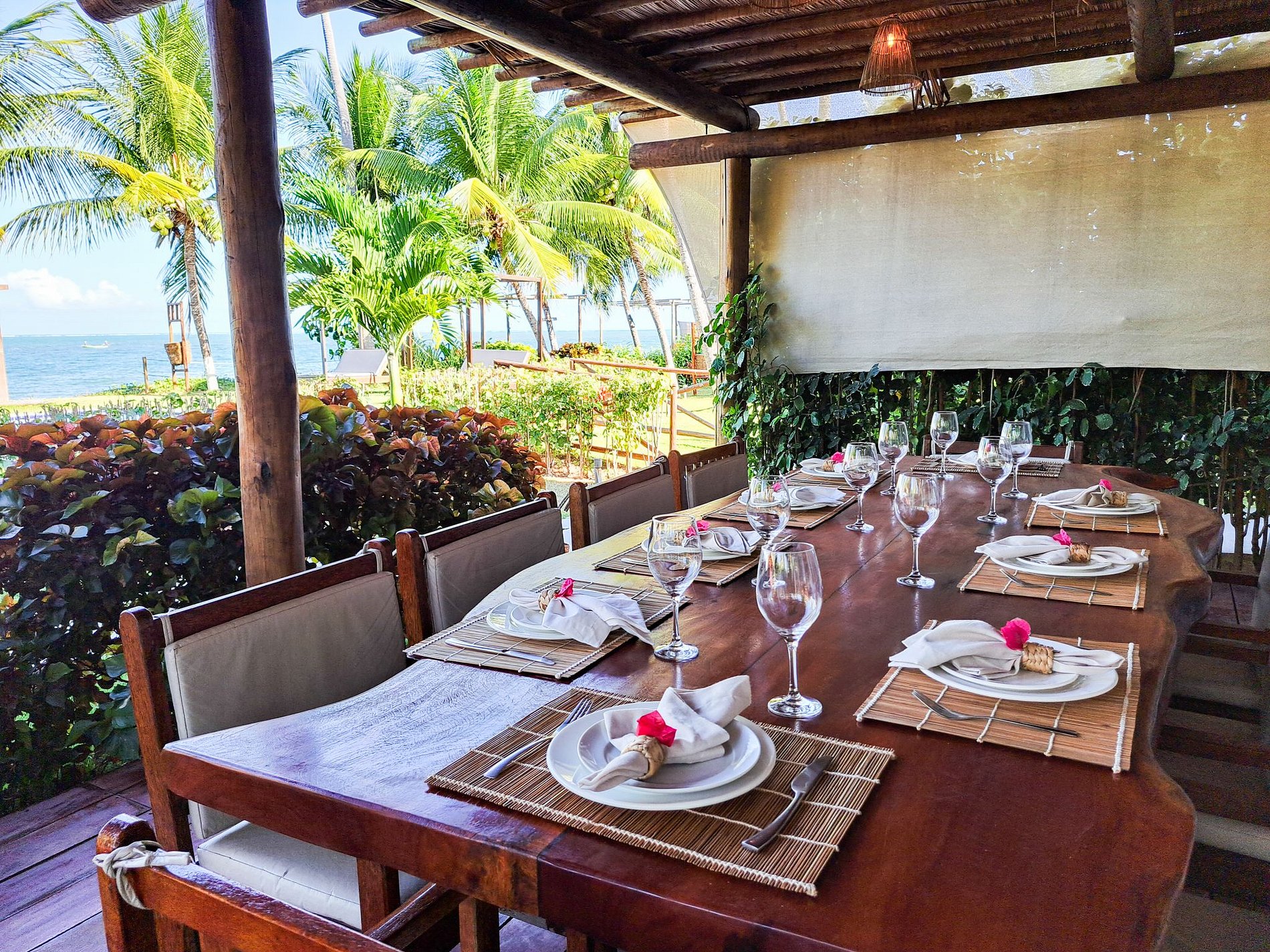 The outdoor area of Casa Ninanoa is a true invitation to relaxation and contact with nature. Surrounded by a lush tropical garden, the property offers a tranquil and exclusive beachfront setting.