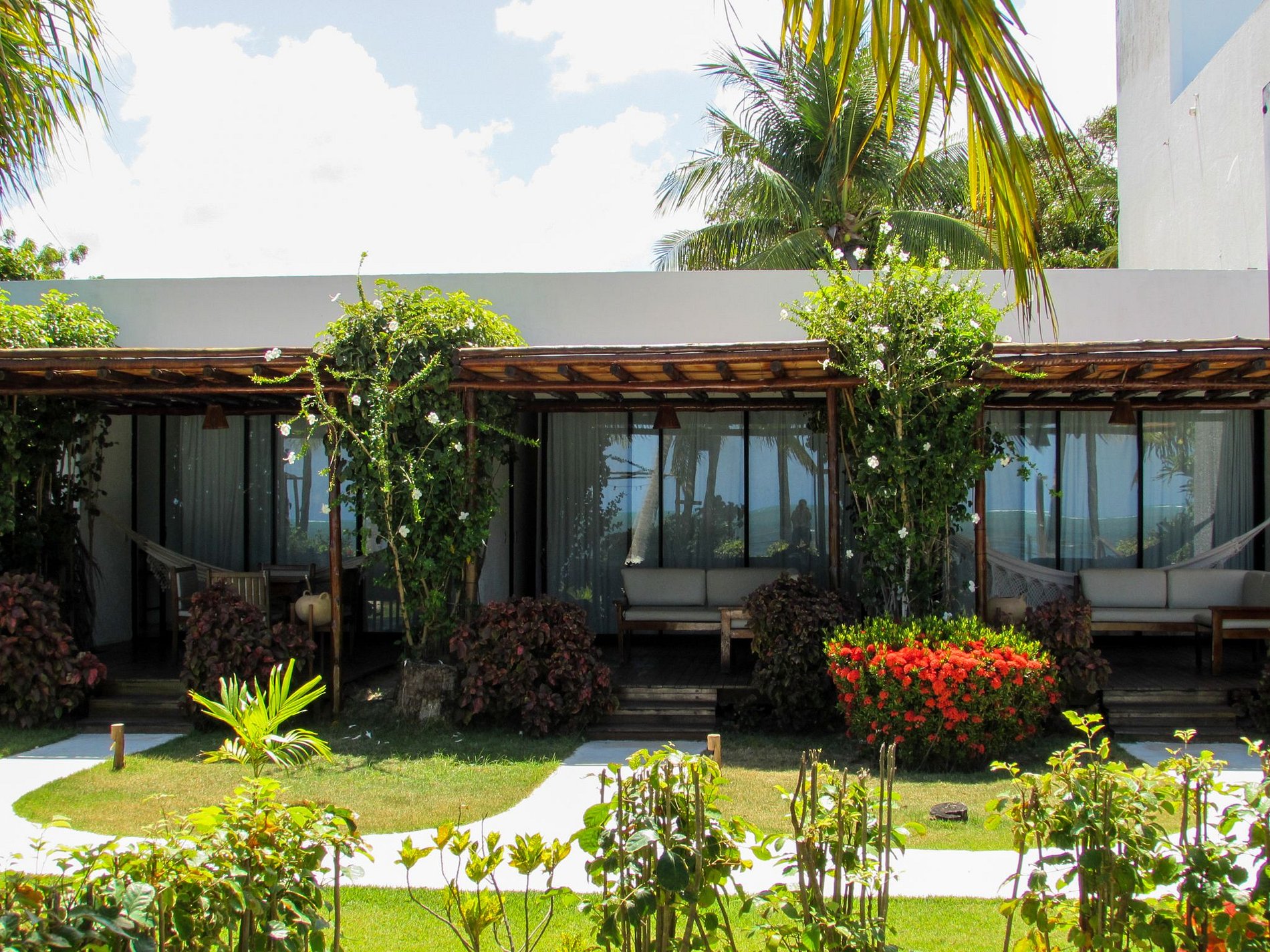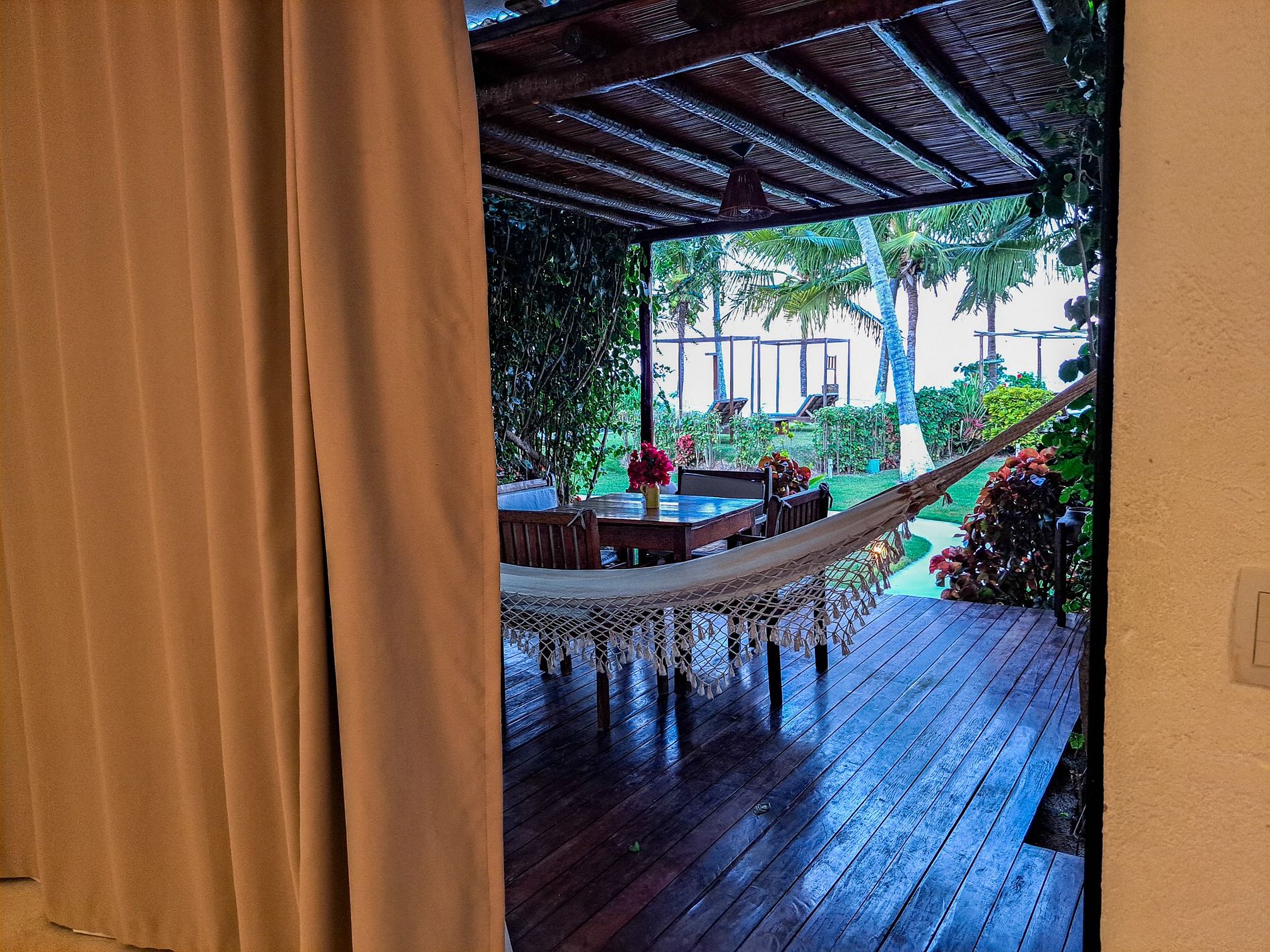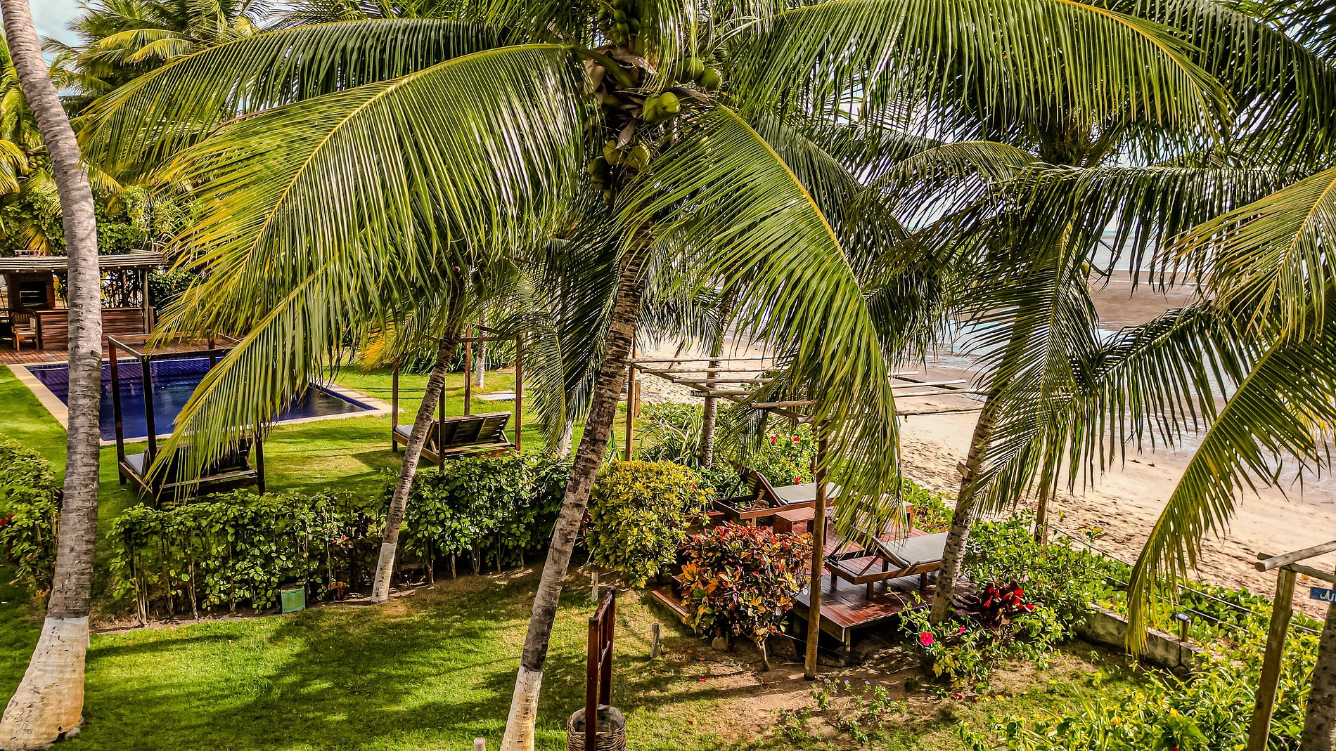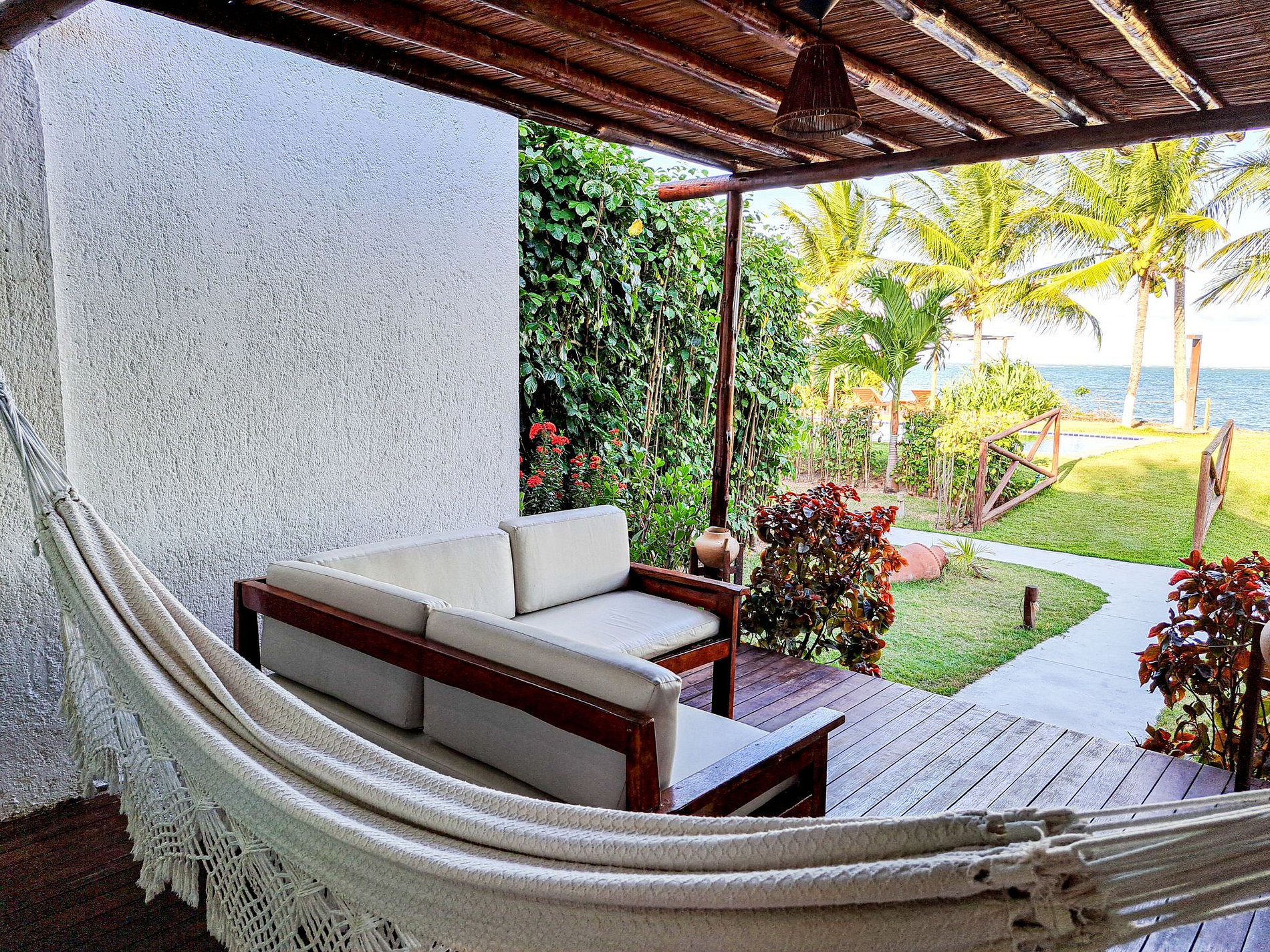 The outdoor area of Casa Ninanoa is a true invitation to relaxation and contact with nature. Surrounded by a lush tropical garden, the property offers a tranquil and exclusive beachfront setting.