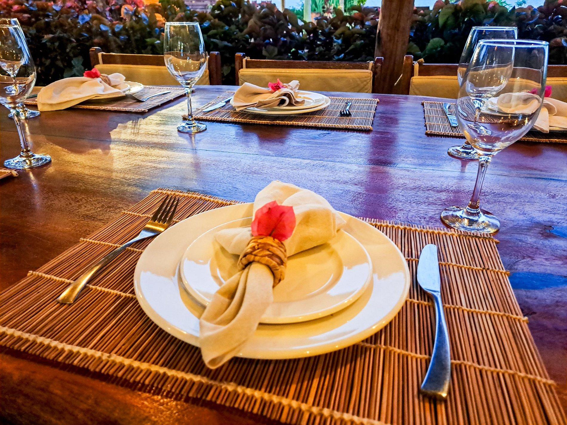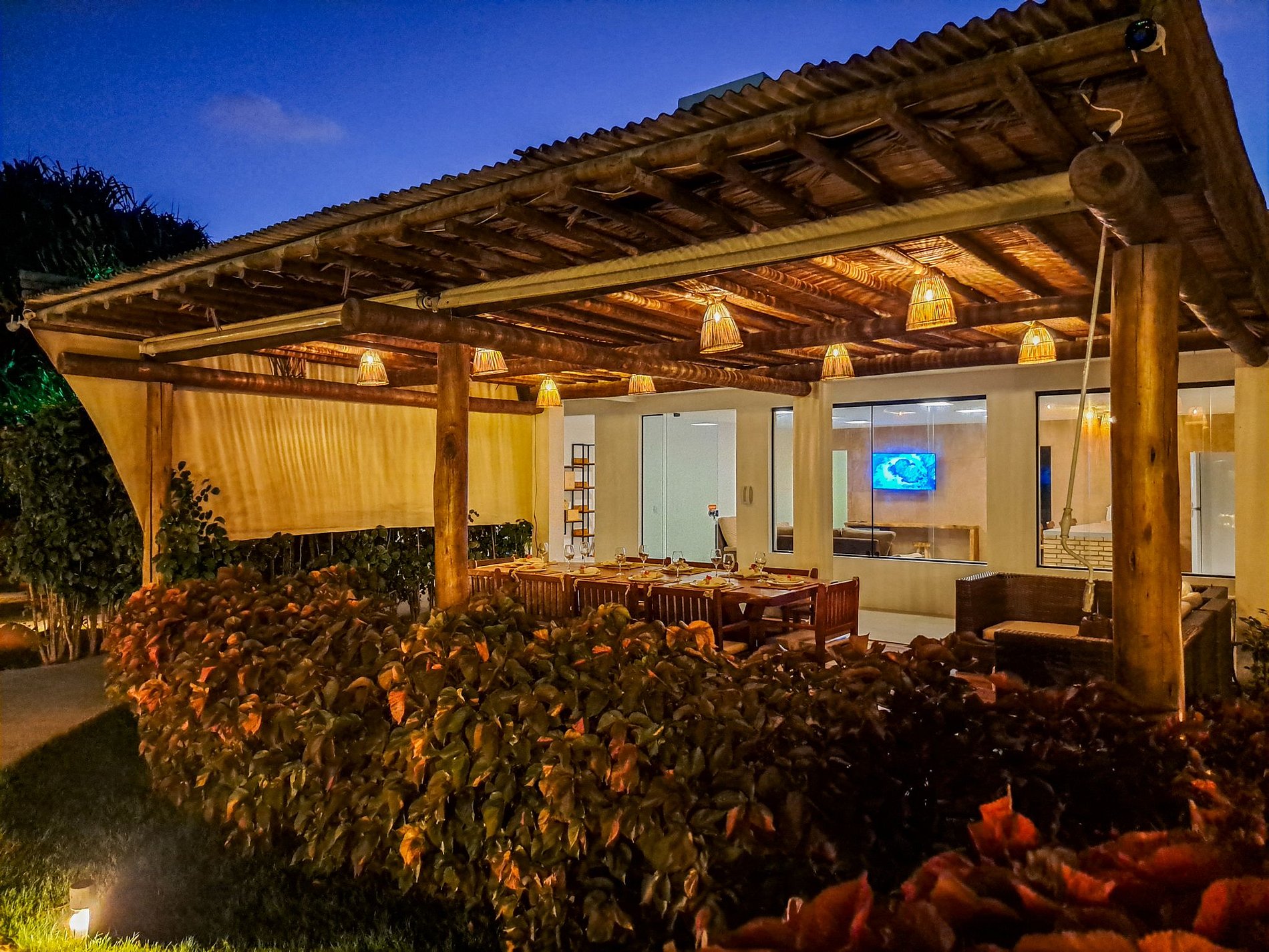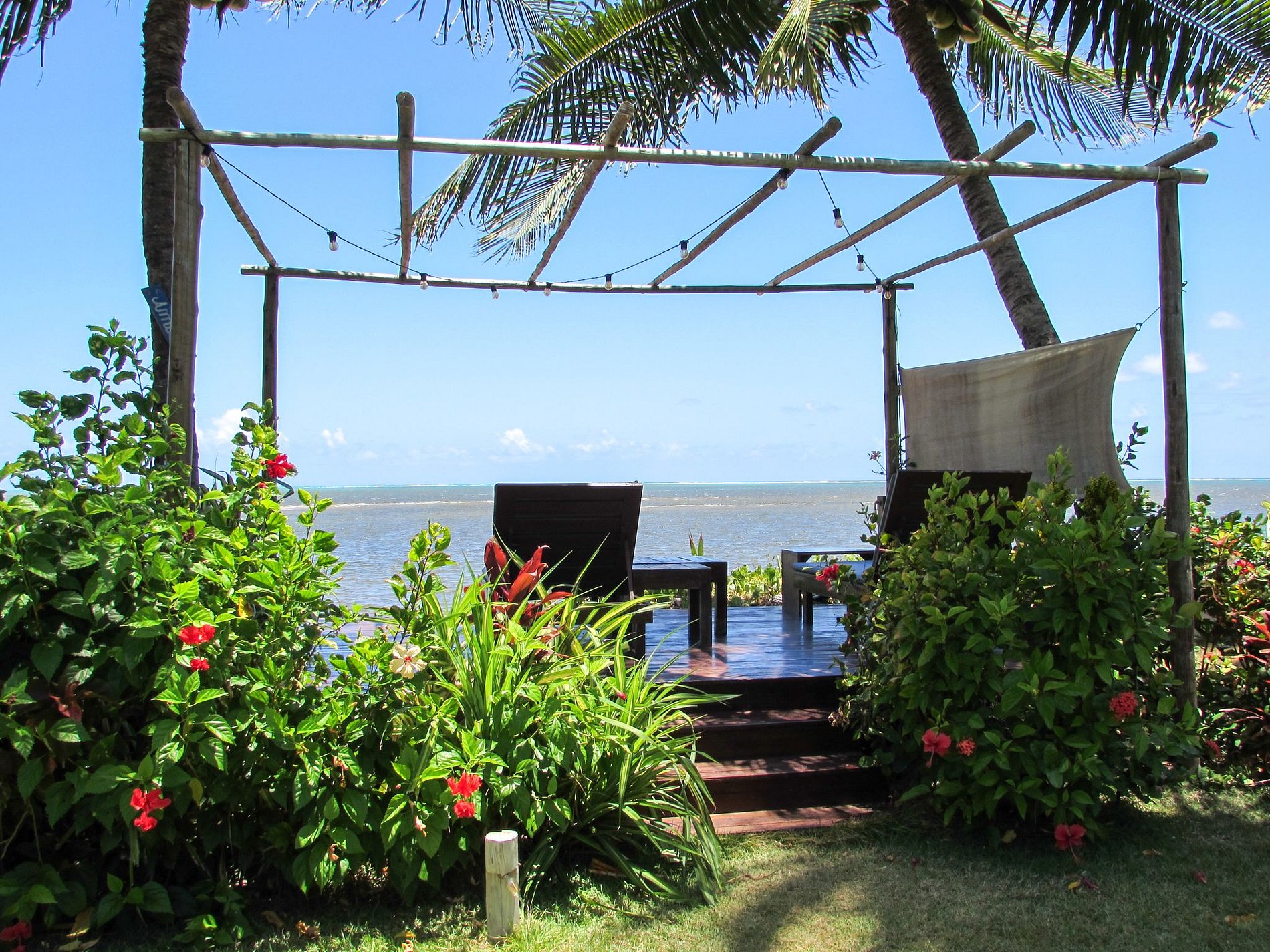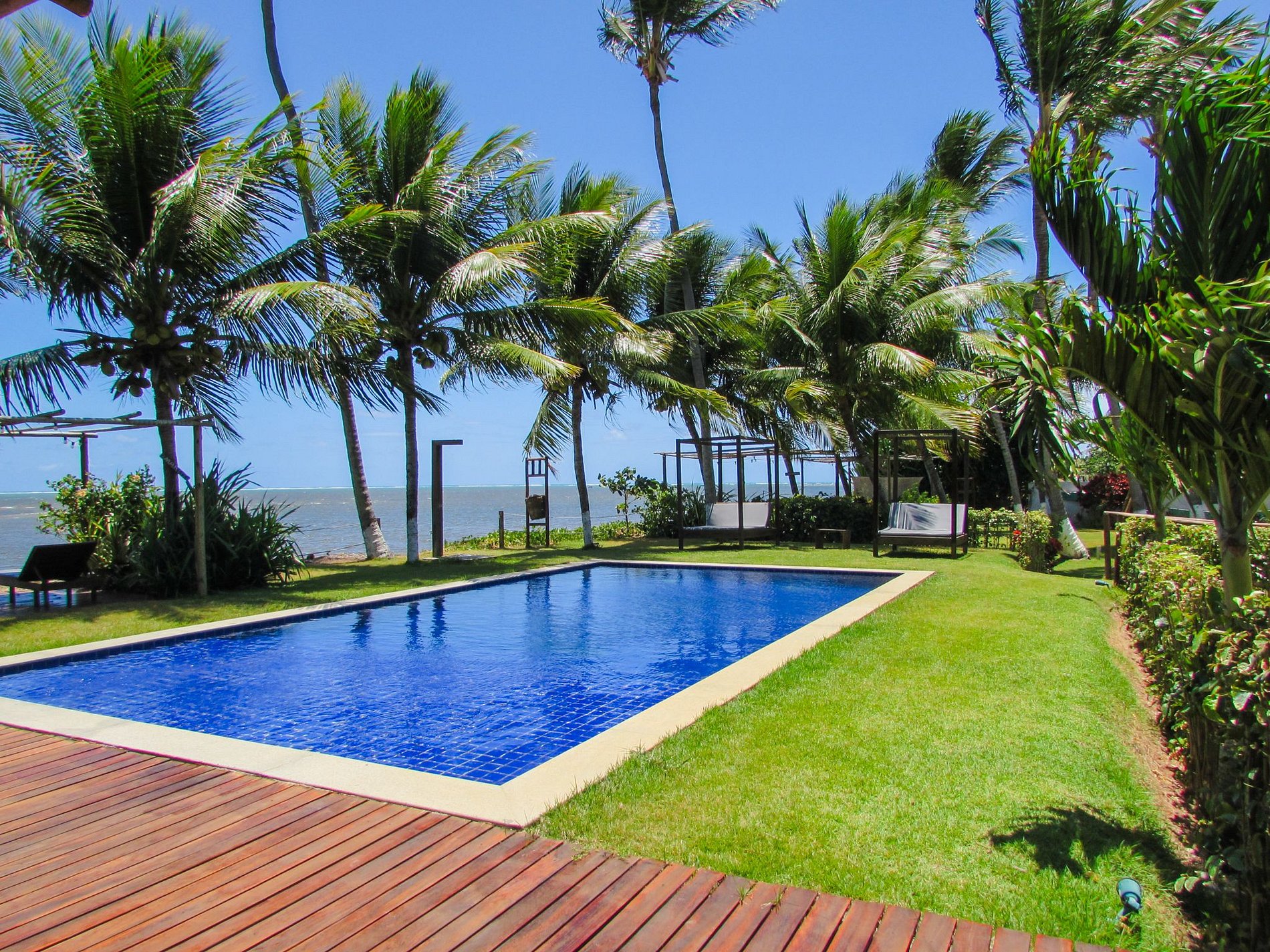 The outdoor area of Casa Ninanoa is a true invitation to relaxation and contact with nature. Surrounded by a lush tropical garden, the property offers a tranquil and exclusive beachfront setting.