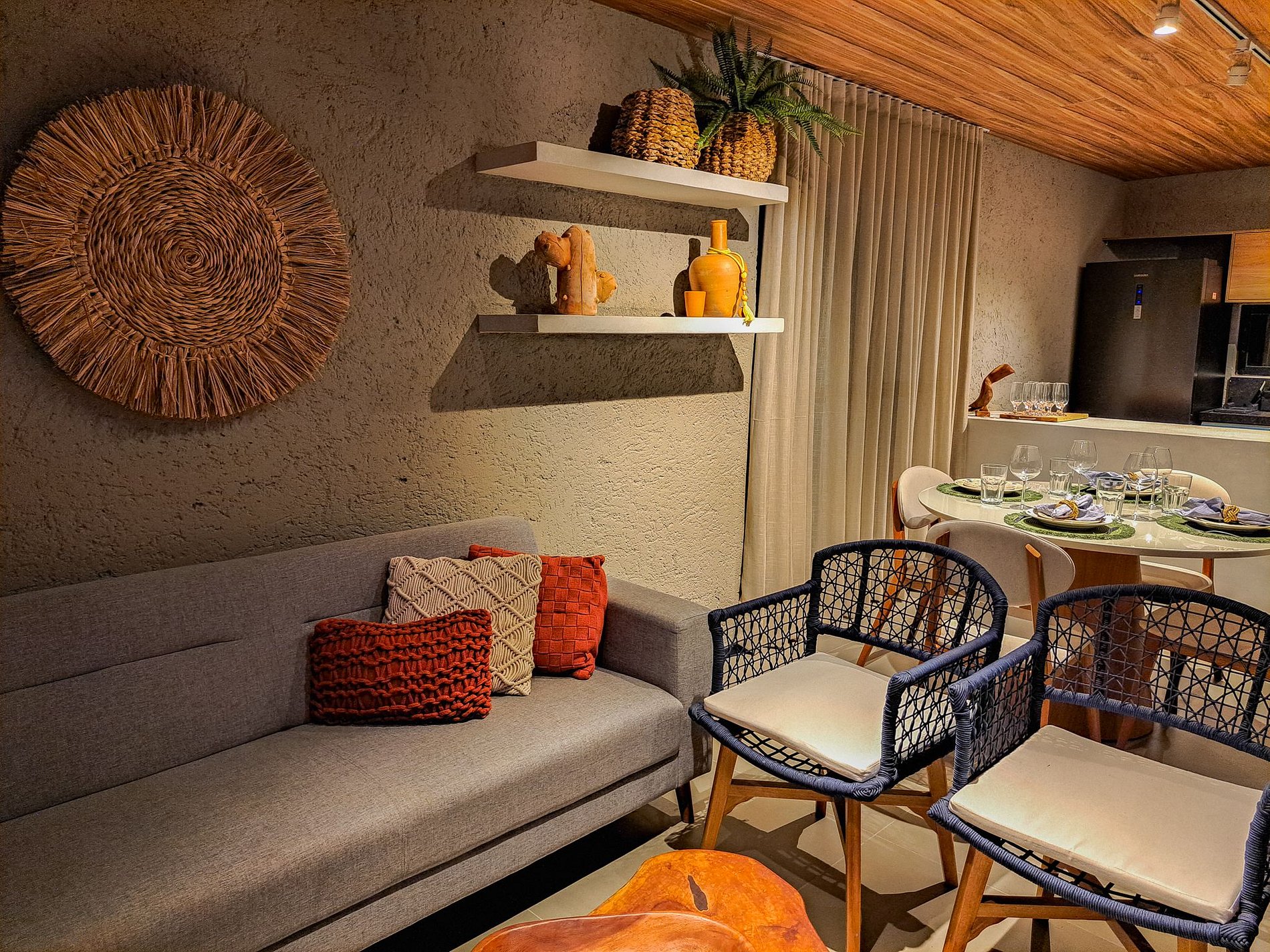 Sala integrada con TV grande y sofá cómodo