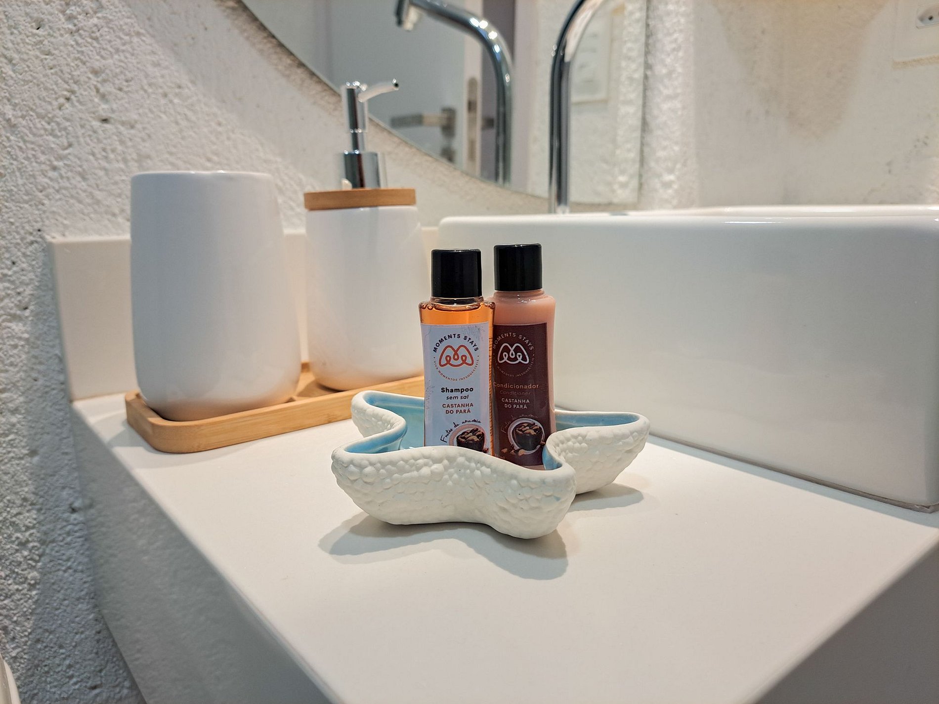 Incluido en su estancia al momento del check-in: 1 botella de agua, 1 detergente, 2 rollos de papel higiénico por baño, 1 esponja, bolsa de basura, 1 kit de baño por suite (1 botella de champú de 35 ml + 1 botella de acondicionador de 35 ml + 1 pastilla de jabón de 20 g).
