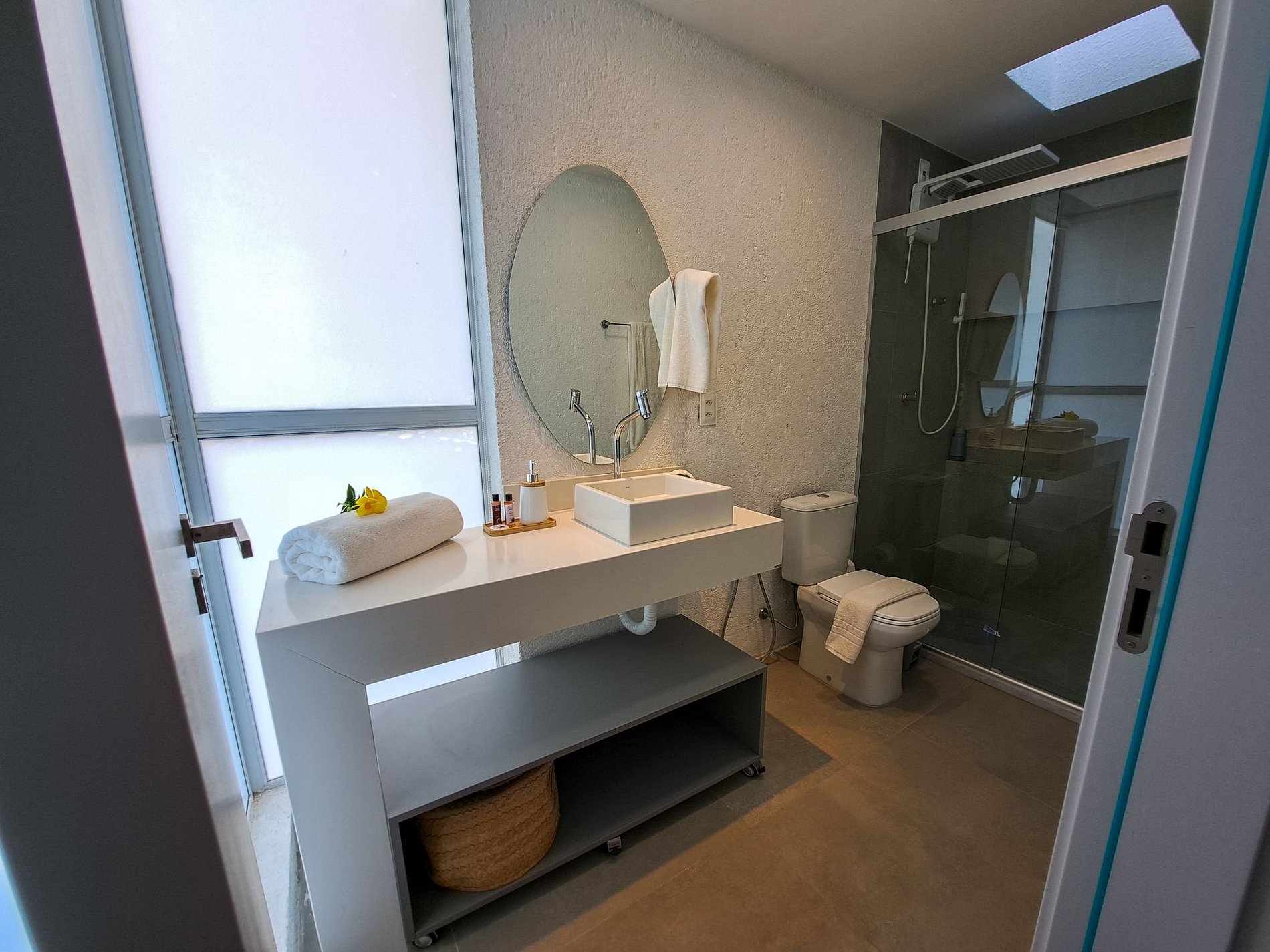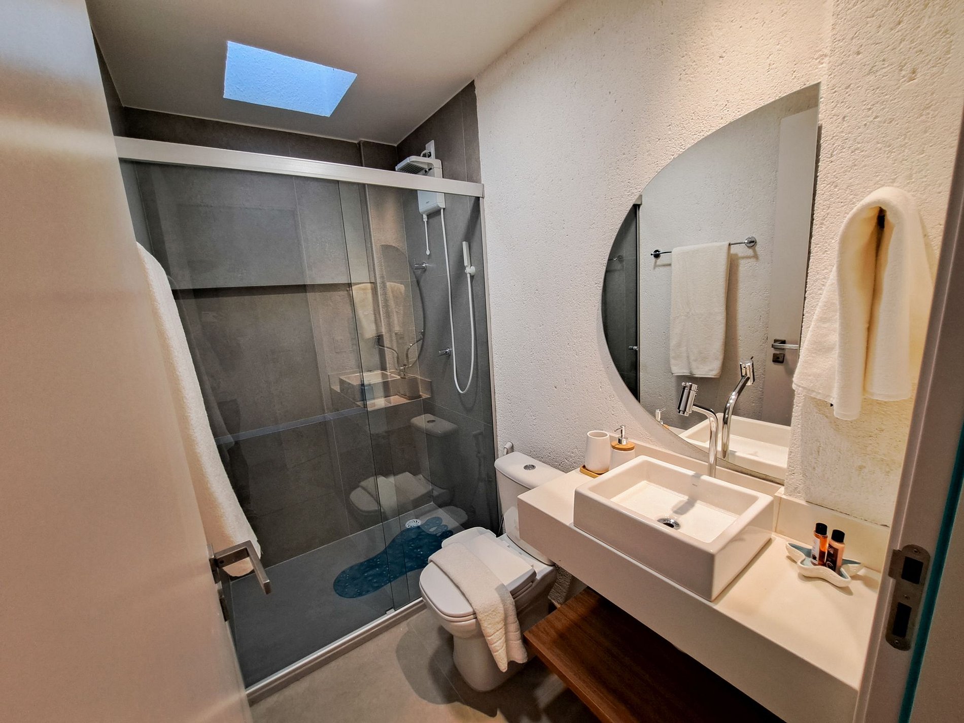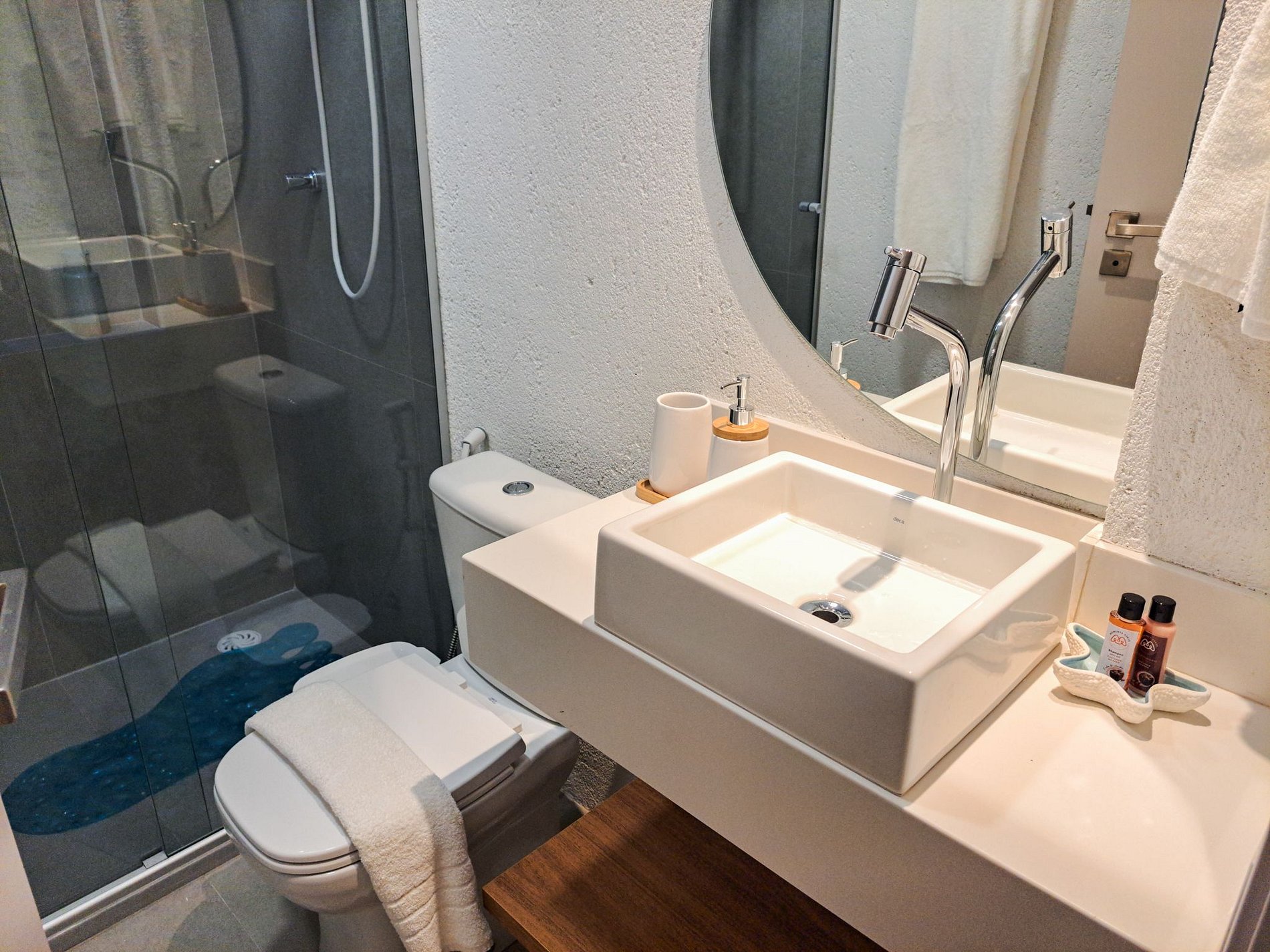 Incluido en su estancia al momento del check-in: 1 botella de agua, 1 detergente, 2 rollos de papel higiénico por baño, 1 esponja, bolsa de basura, 1 kit de baño por suite (1 botella de champú de 35 ml + 1 botella de acondicionador de 35 ml + 1 pastilla de jabón de 20 g).
