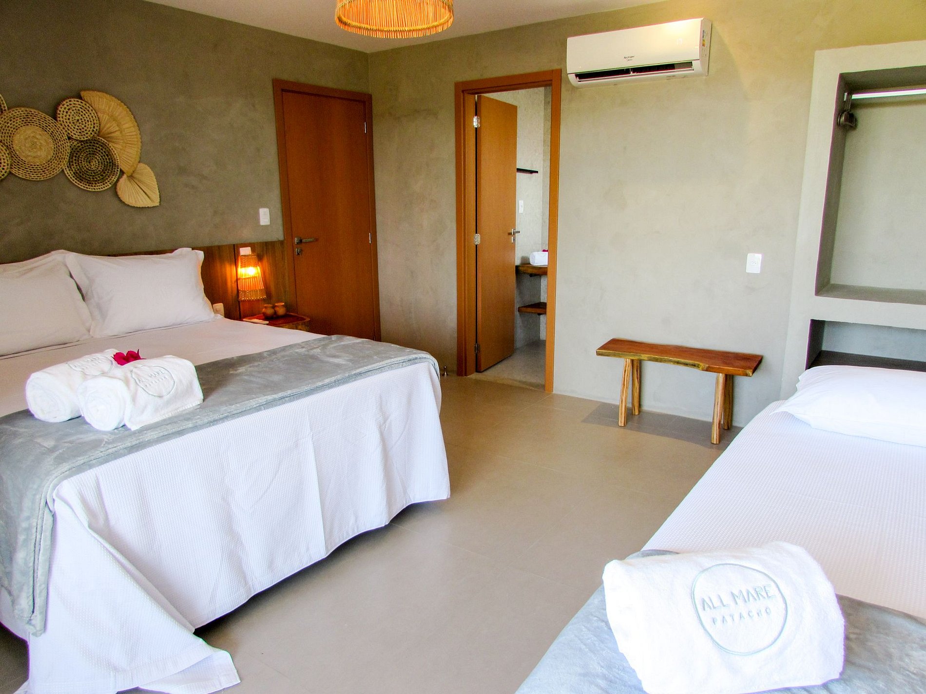 - 02 con cama queen, cama individual auxiliar y posibilidad de colchón extra;