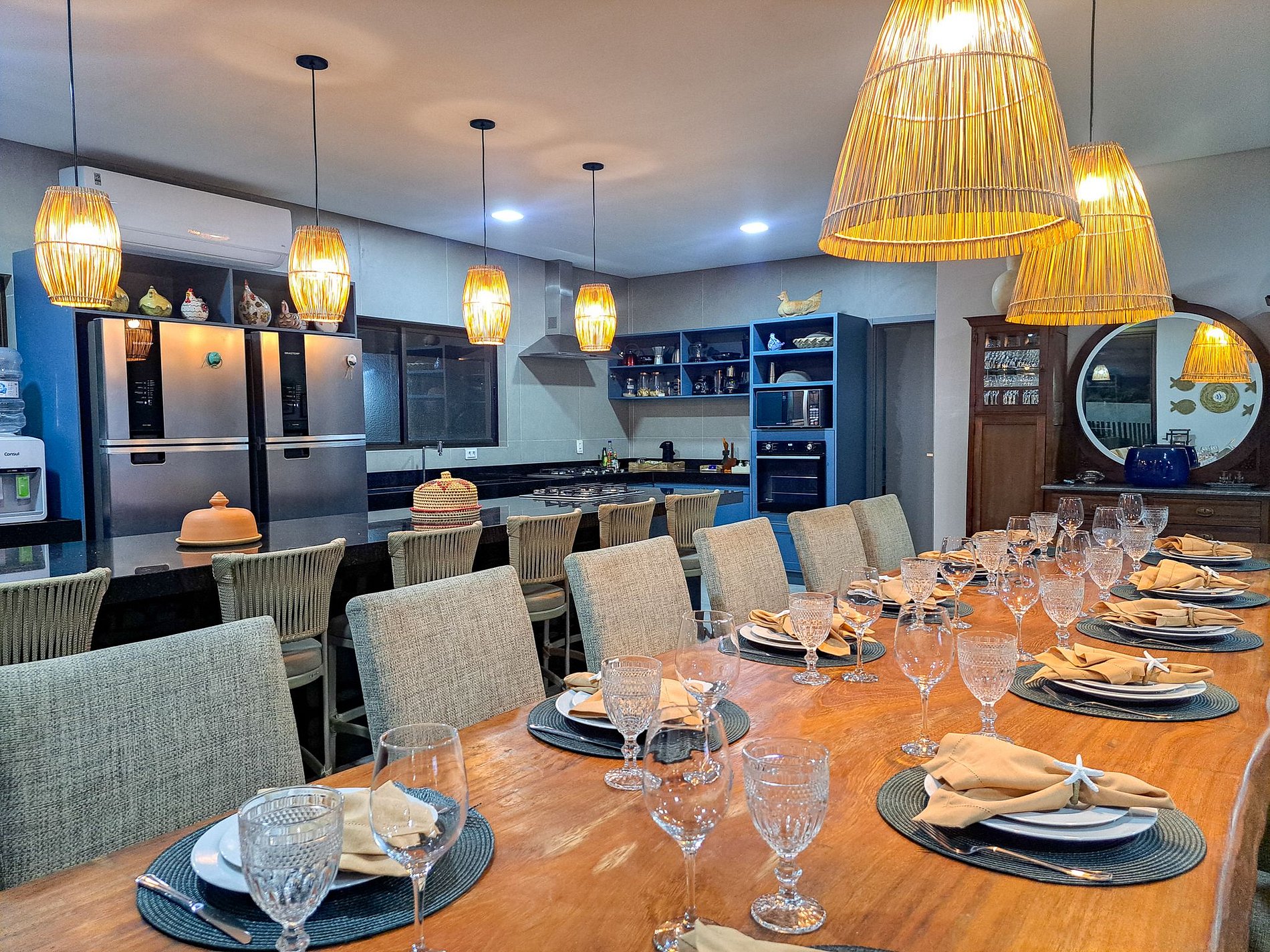 La cocina está completamente equipada, y ofrecemos la opción de contratar a nuestras cocineras especializadas en platos locales y cocina brasileña para la preparación del desayuno, almuerzo y aperitivos, servicio que puede contratarse después de confirmar la reserva.