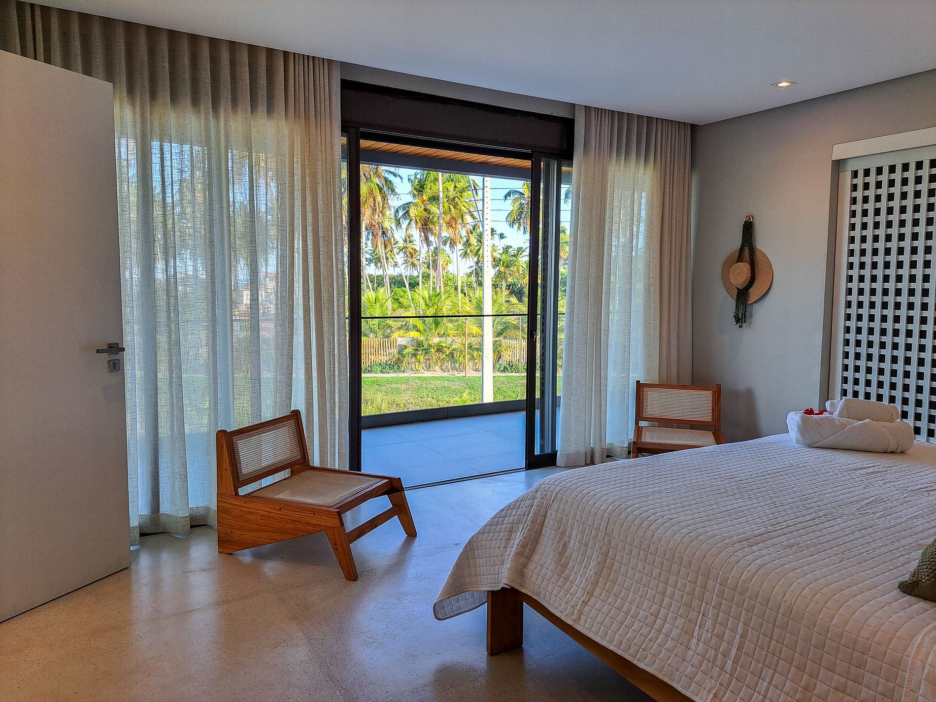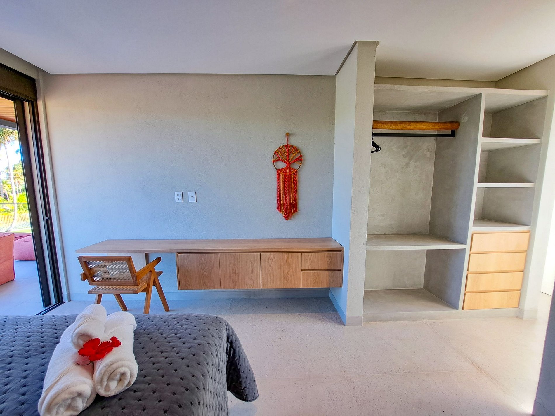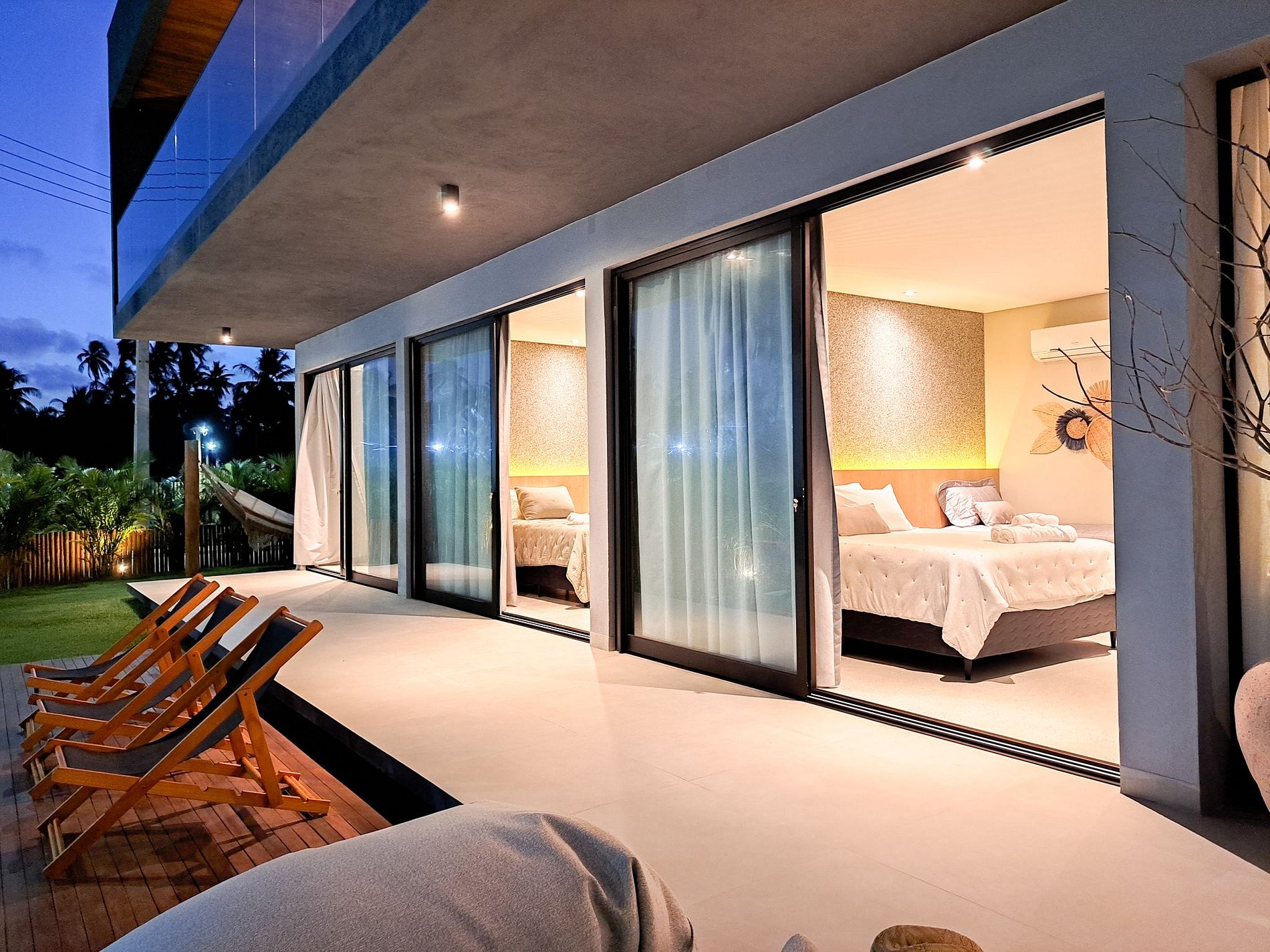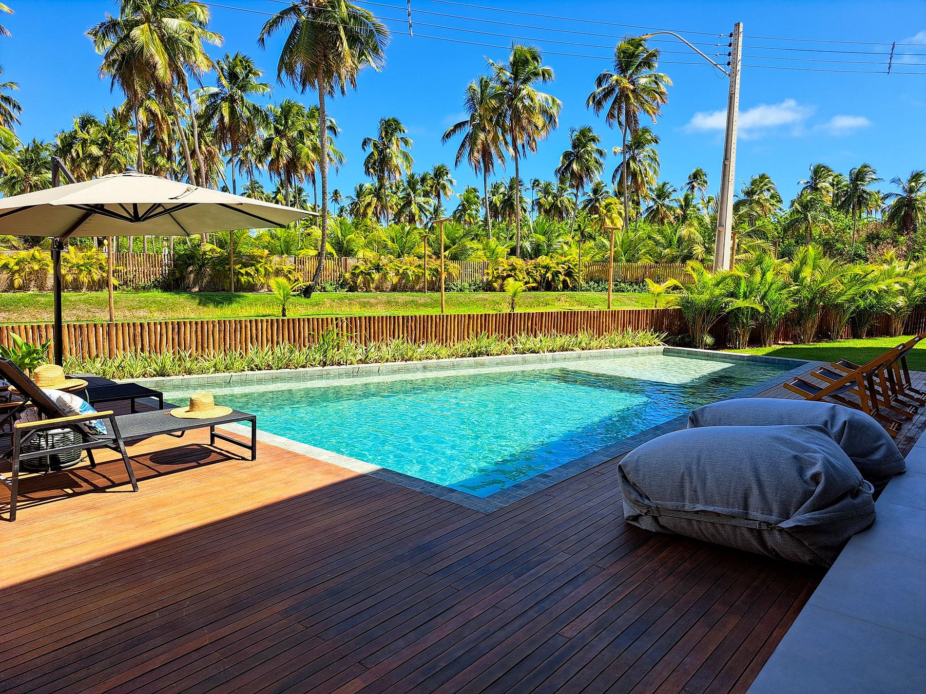 La casa está ubicada en un condominio privado en la impresionante Praia do Patacho, una zona de protección ambiental con arena blanca y un mar azul increíble.