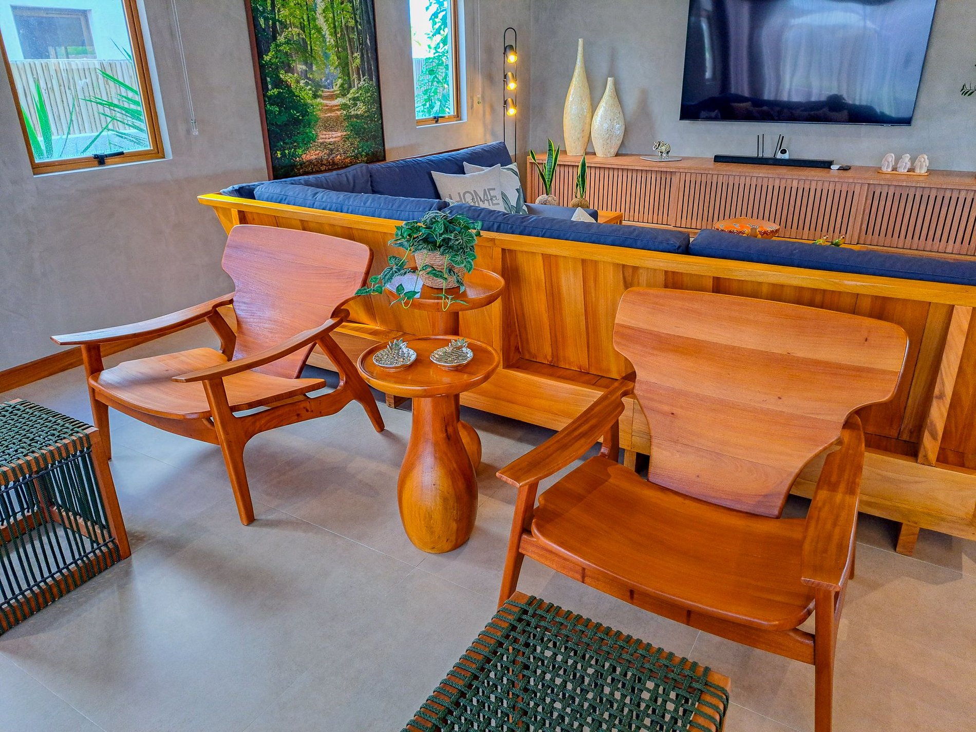Acabamentos nobres (freijó, porcelanato e alumínio amadeirado)