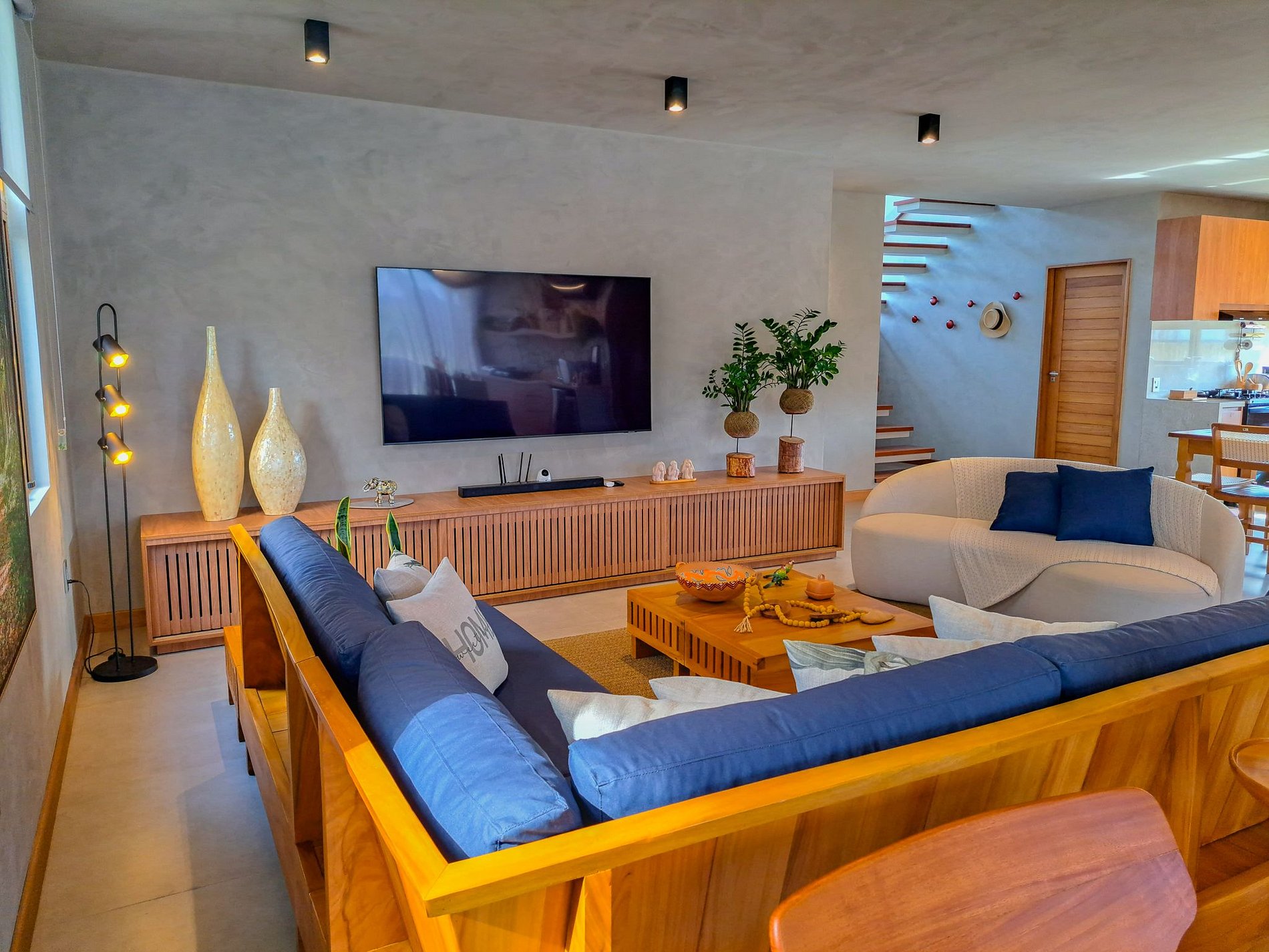 Sala de TV integrada à cozinha gourmet