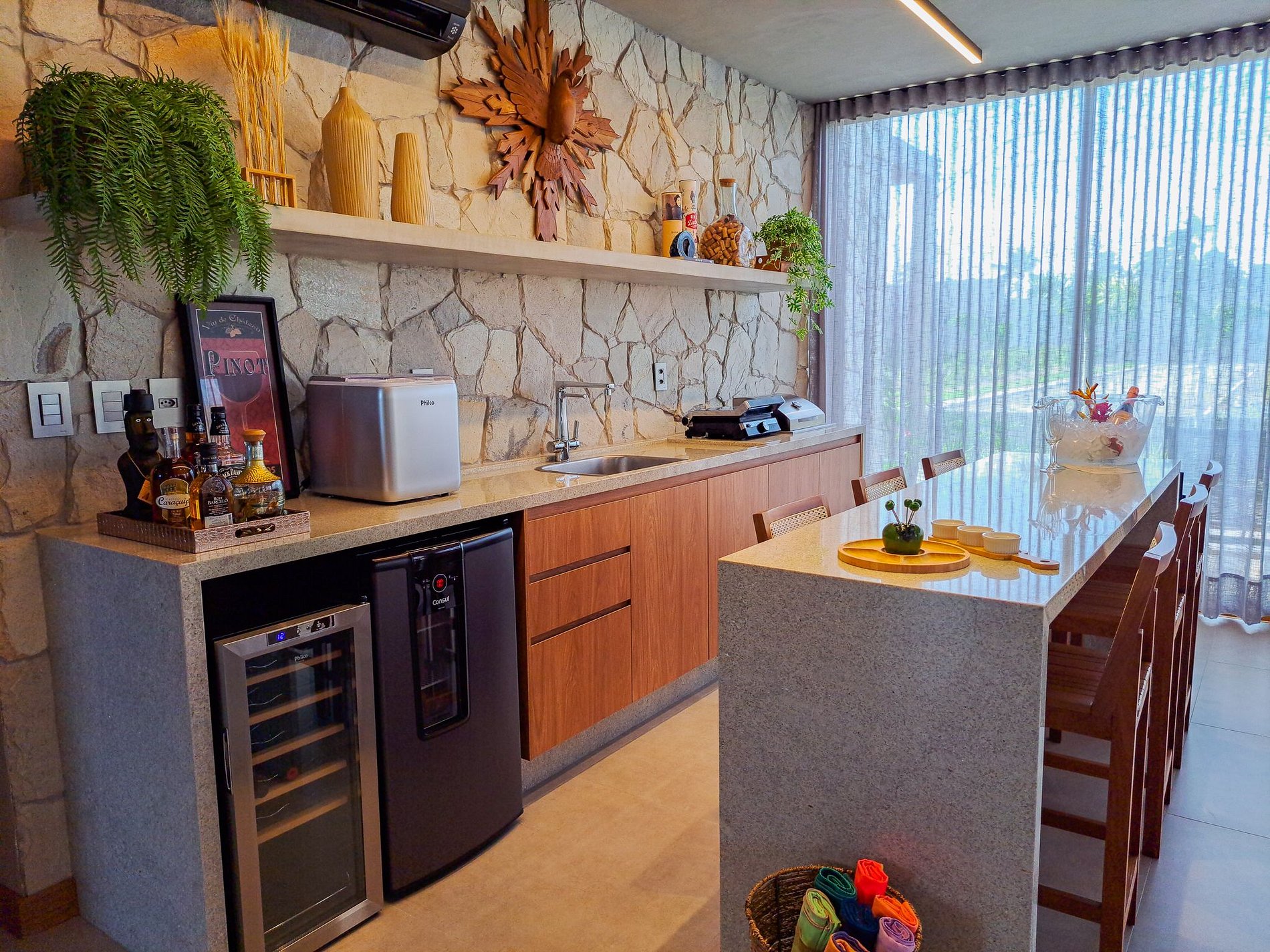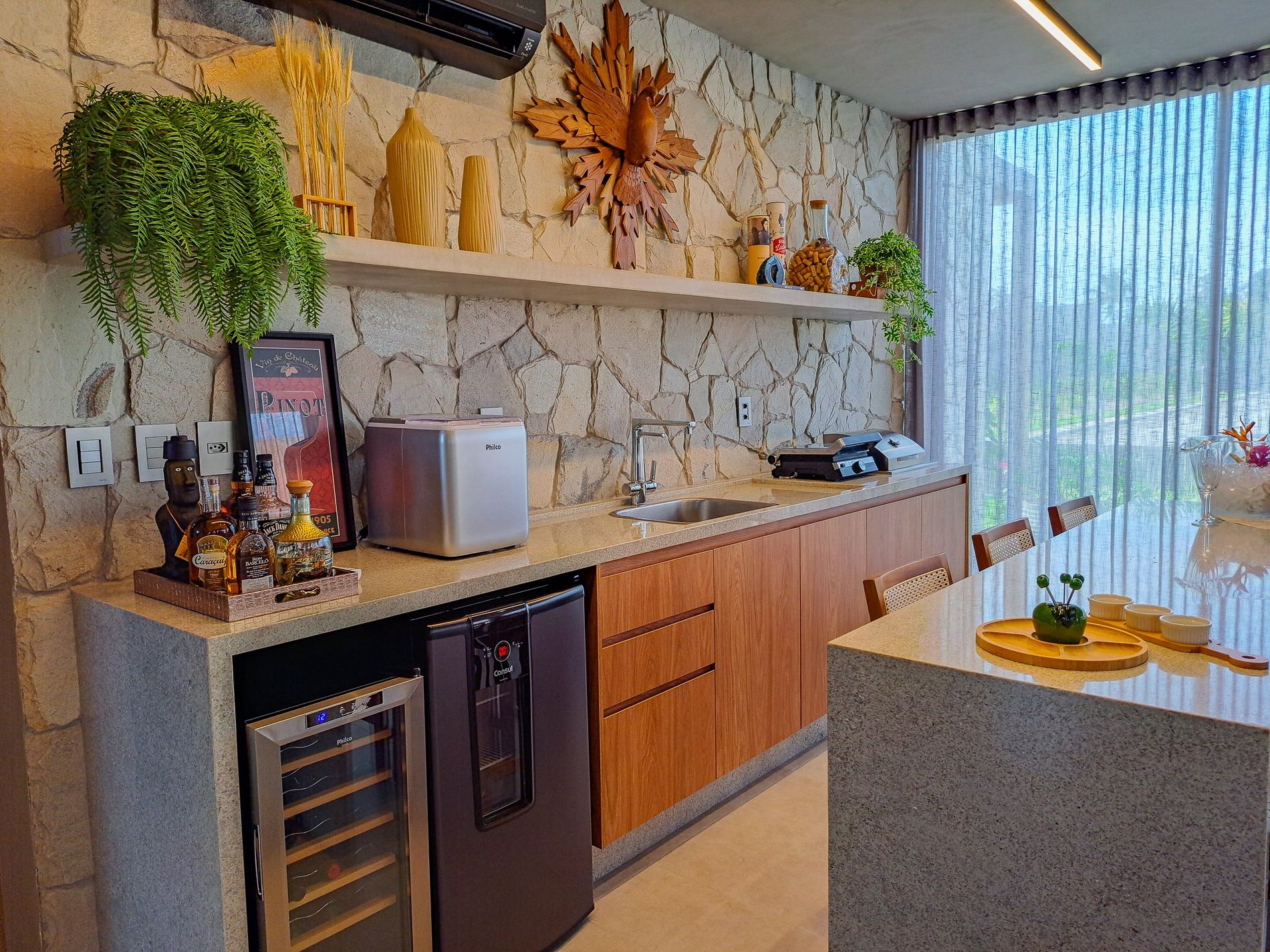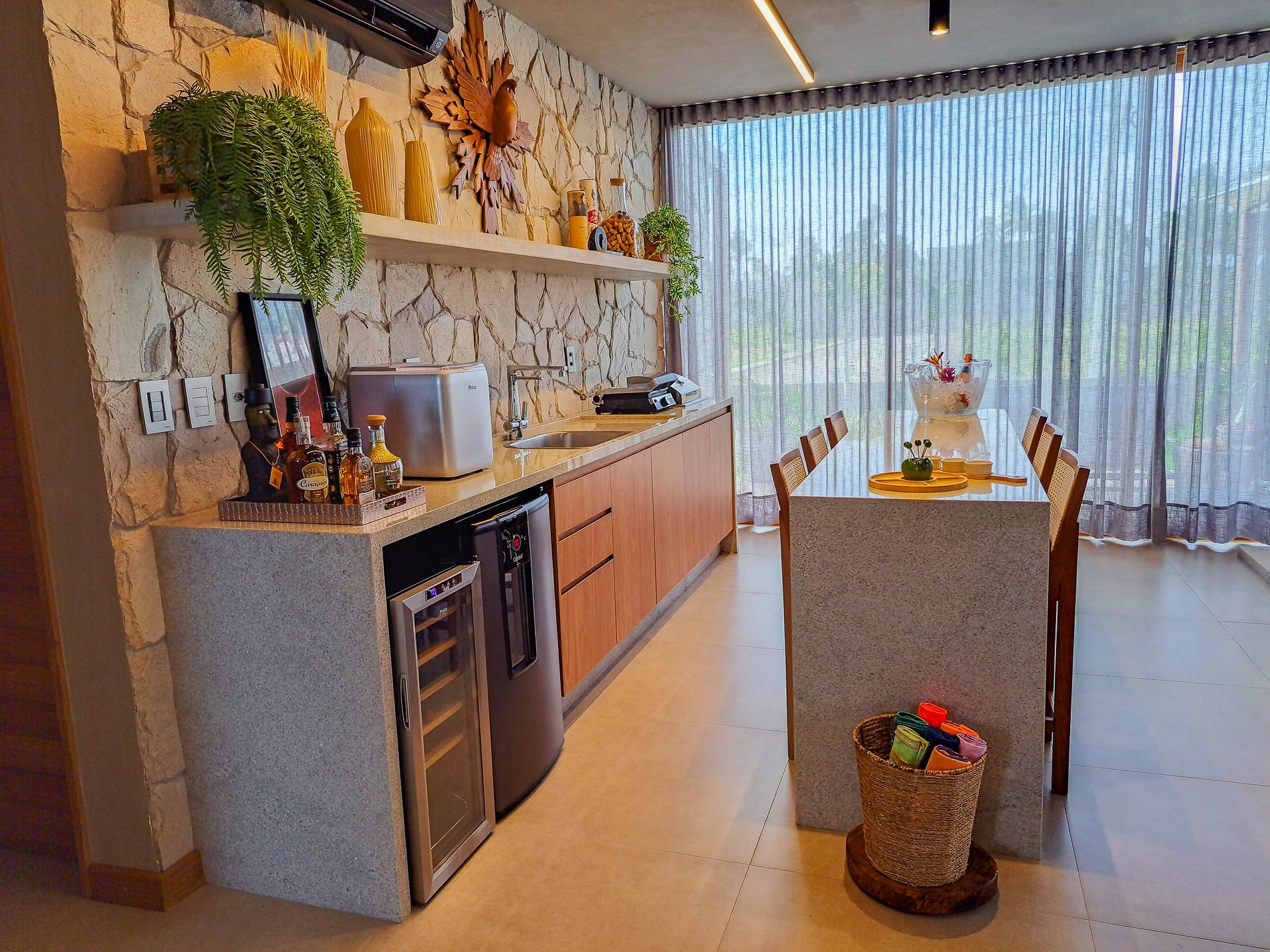 Sala de TV integrada à cozinha gourmet