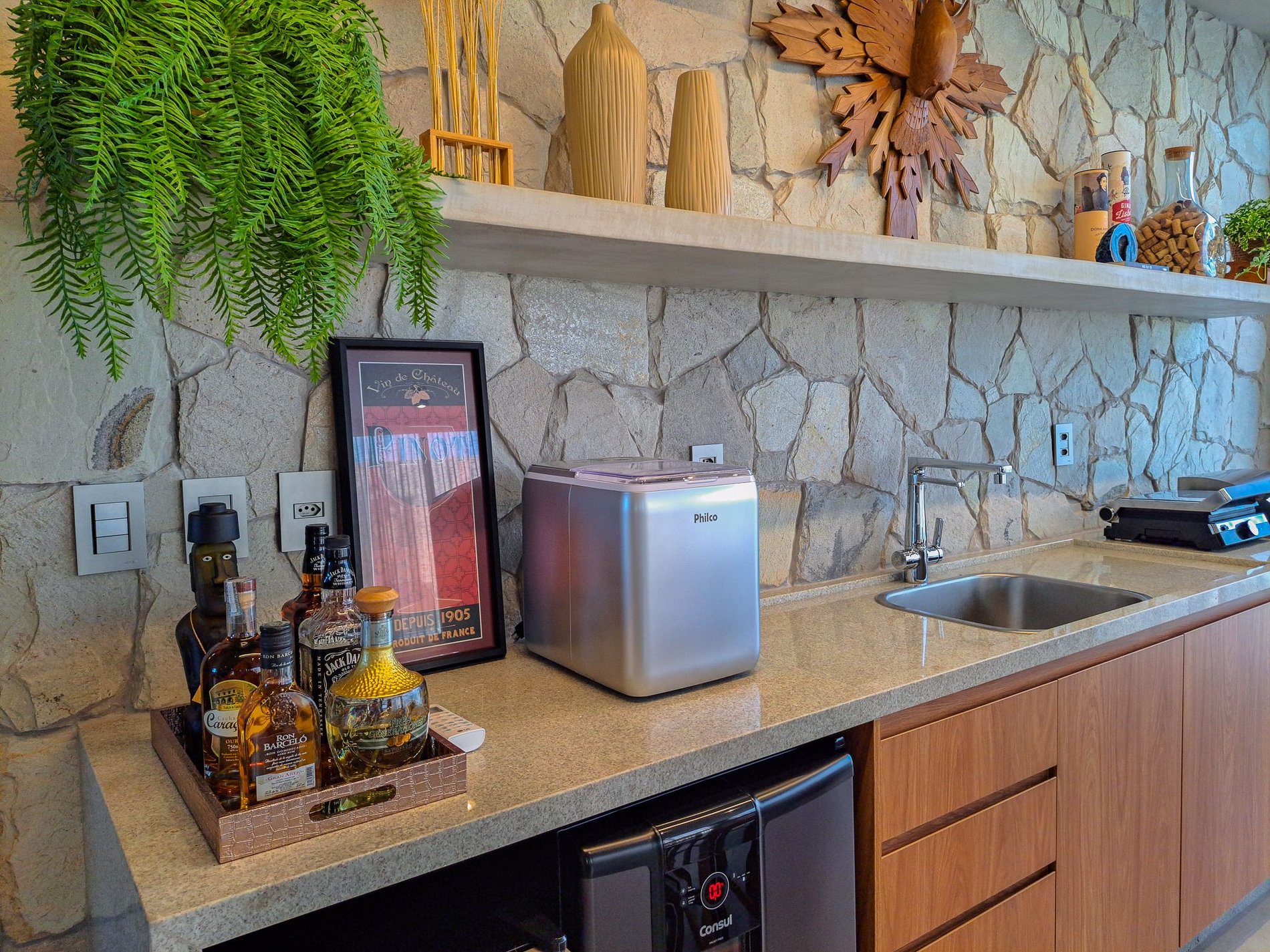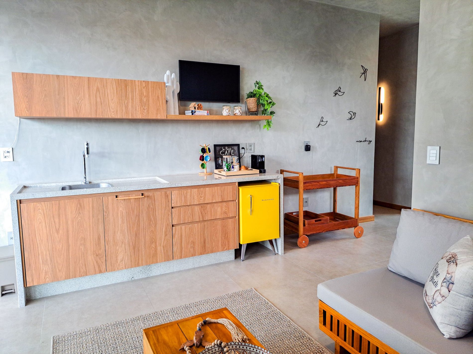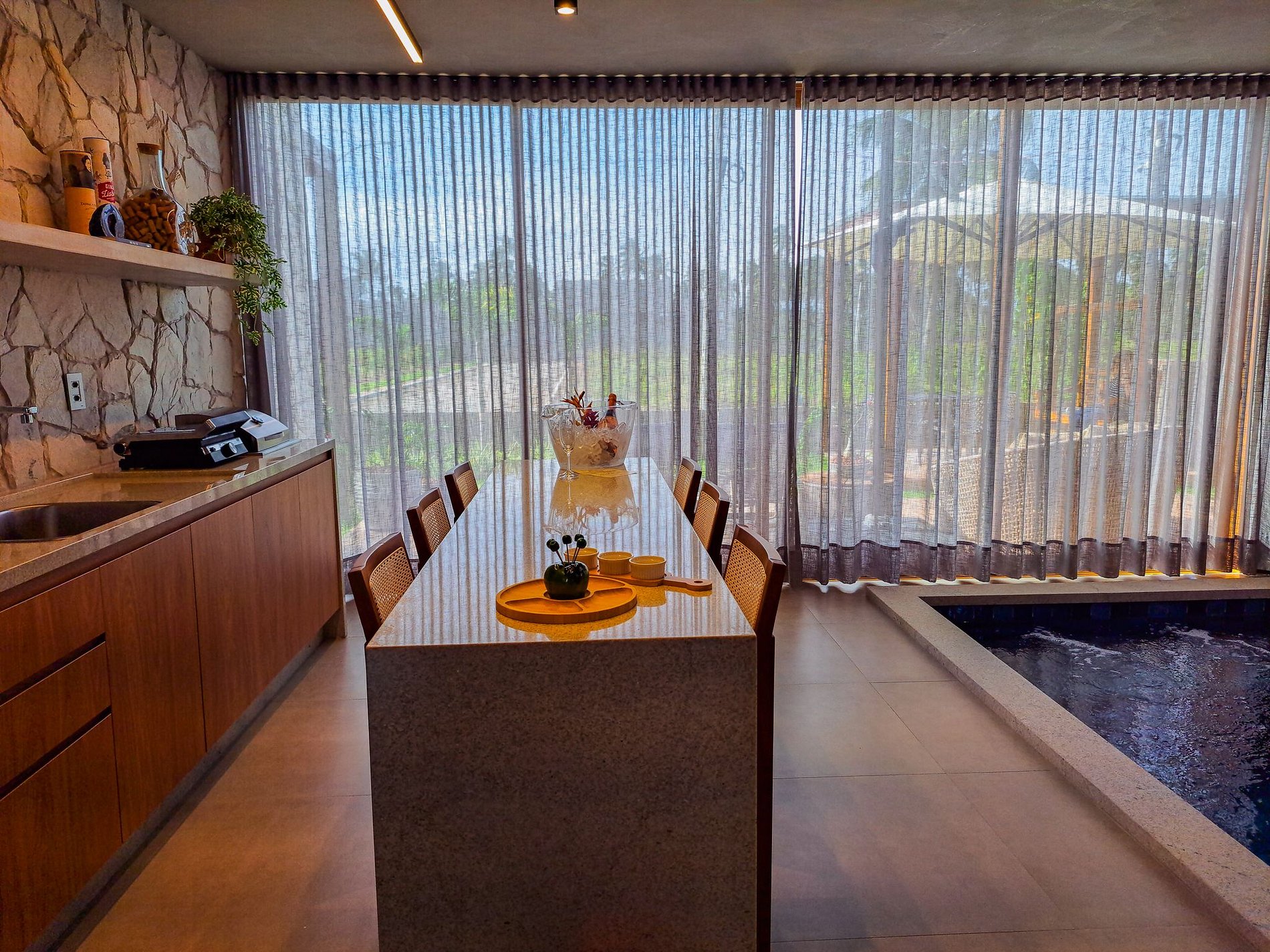 Sala de TV integrada à cozinha gourmet