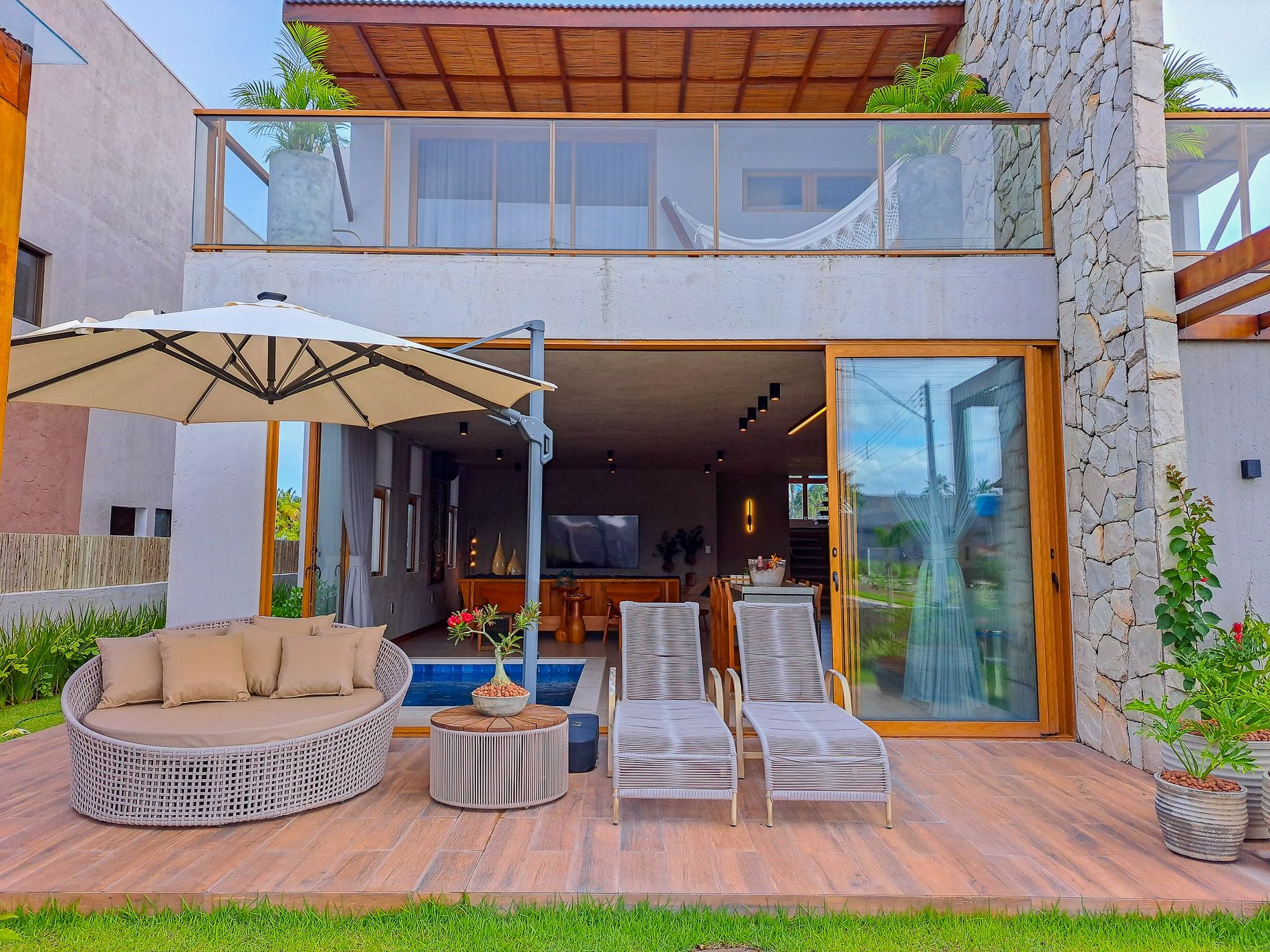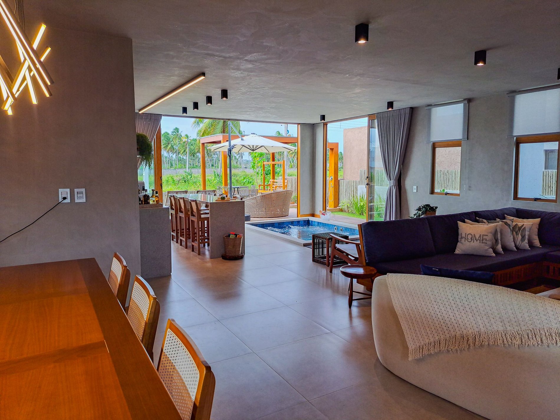A Casa Aurora acomoda até 11 pessoas com muito espaço, conforto e modernidade e está localizada no condomínio Eco Patacho Residence, um espaço exclusivo e seguro à beira-mar da Praia do Patacho, em Porto de Pedras – AL.