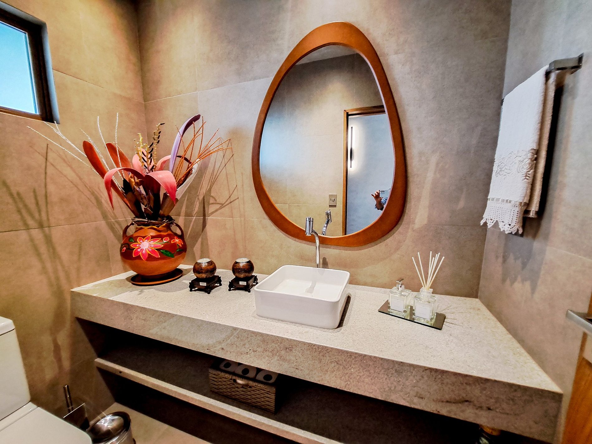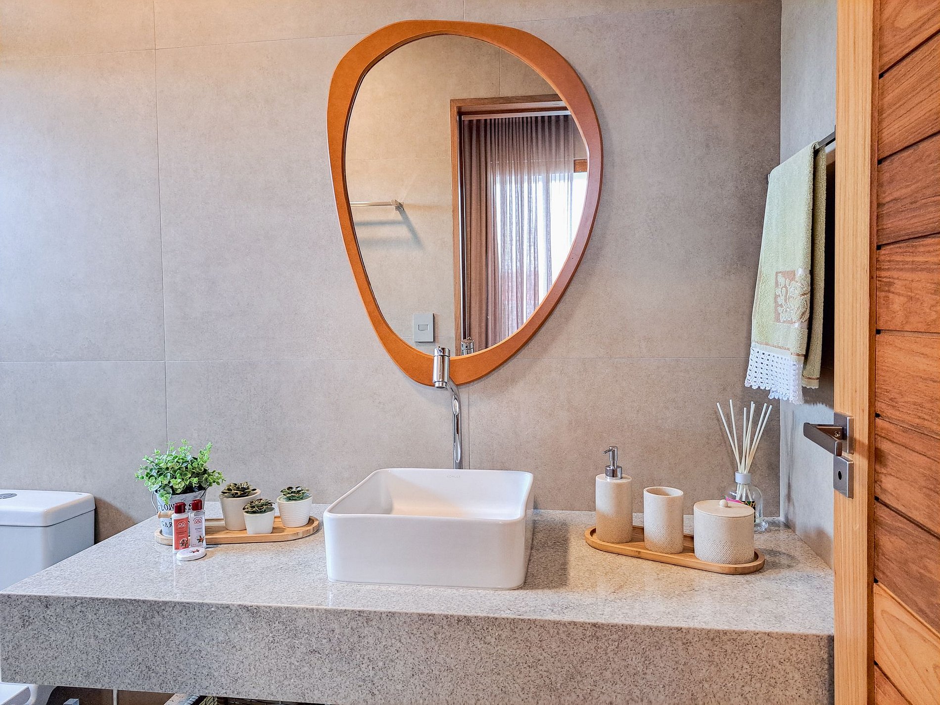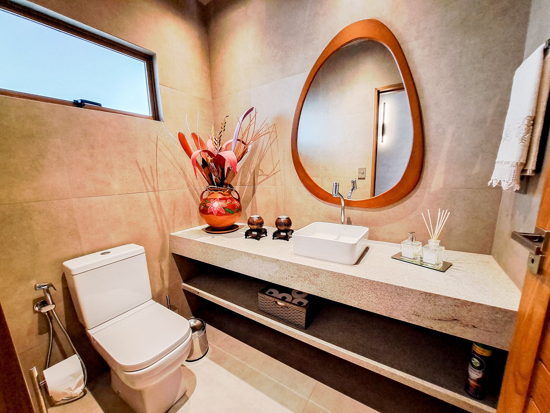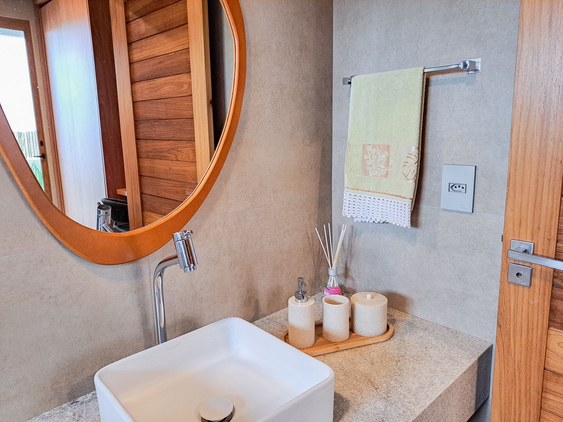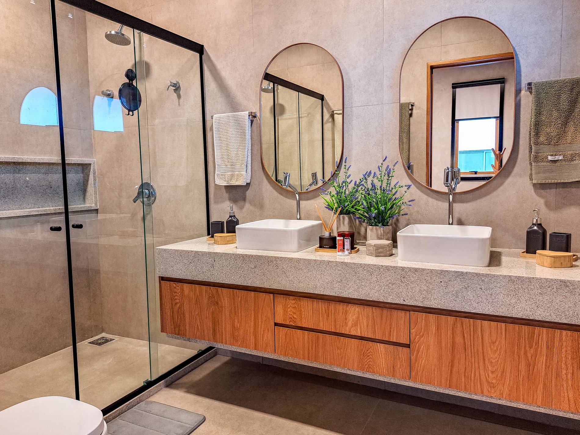 Acabamentos nobres (freijó, porcelanato e alumínio amadeirado)