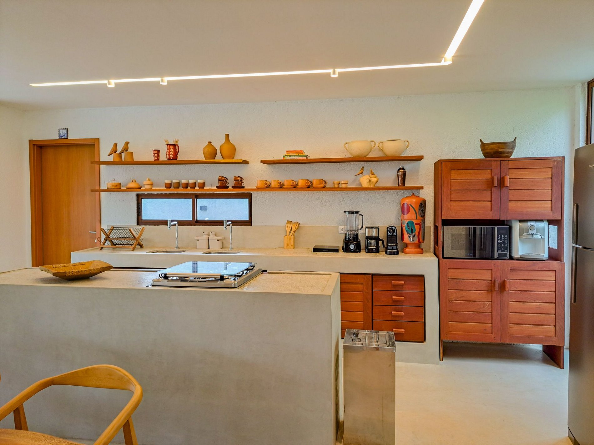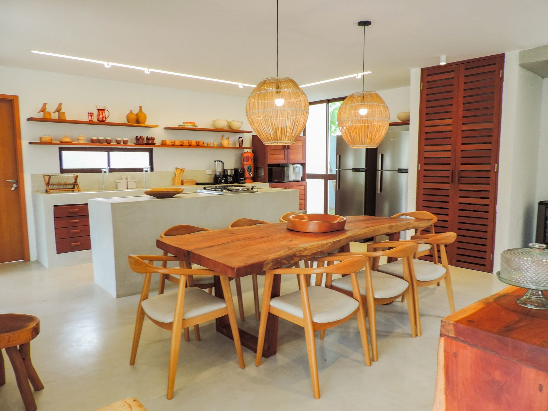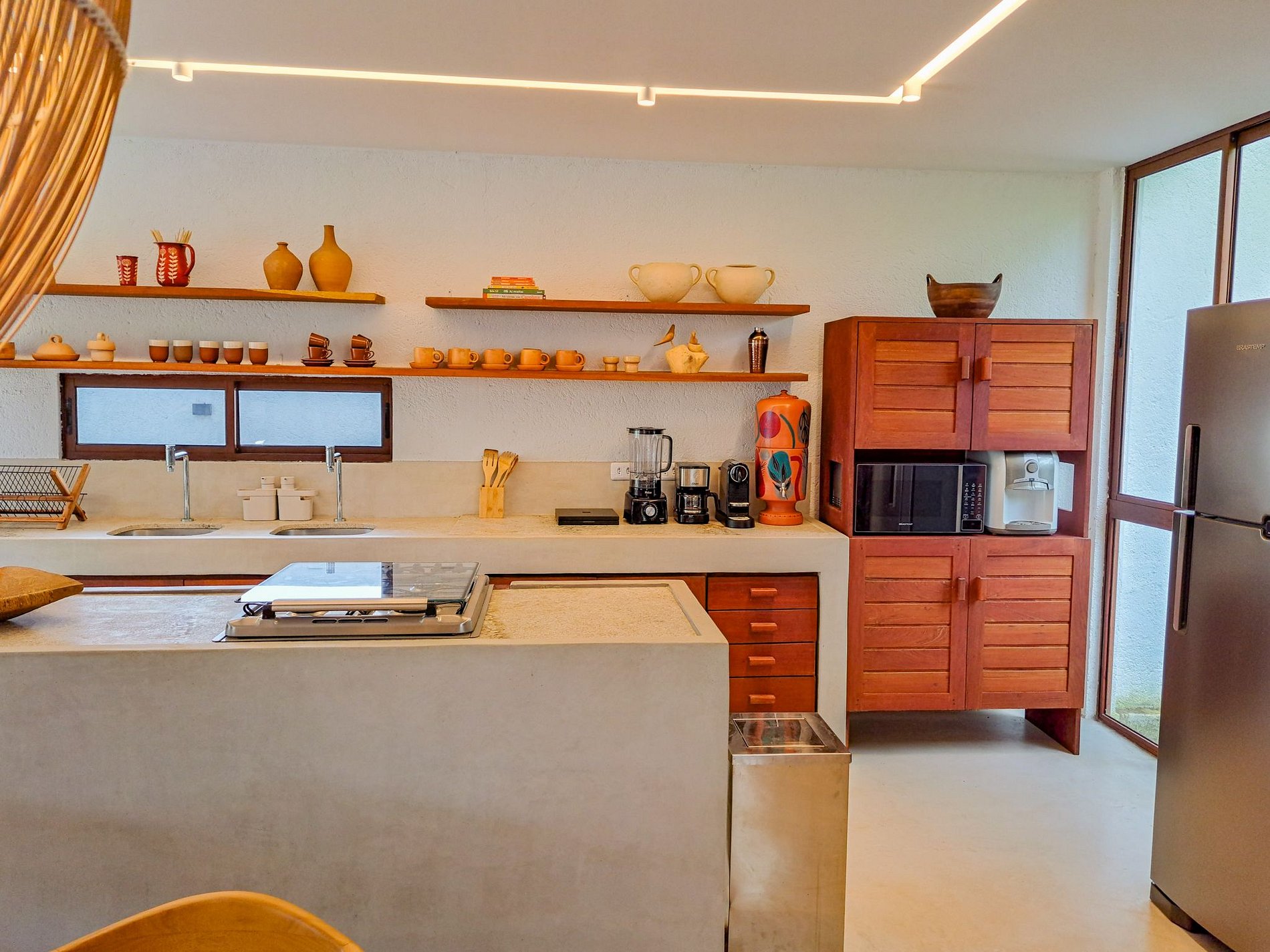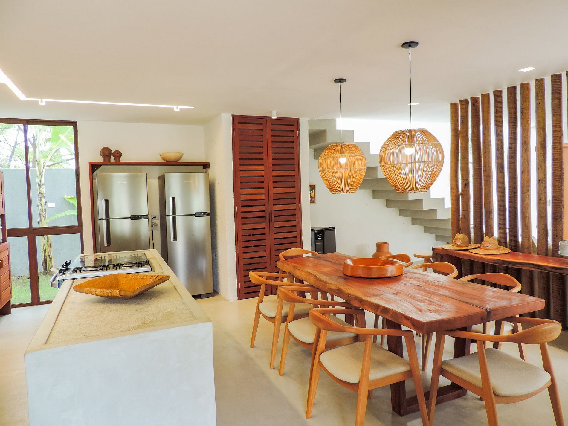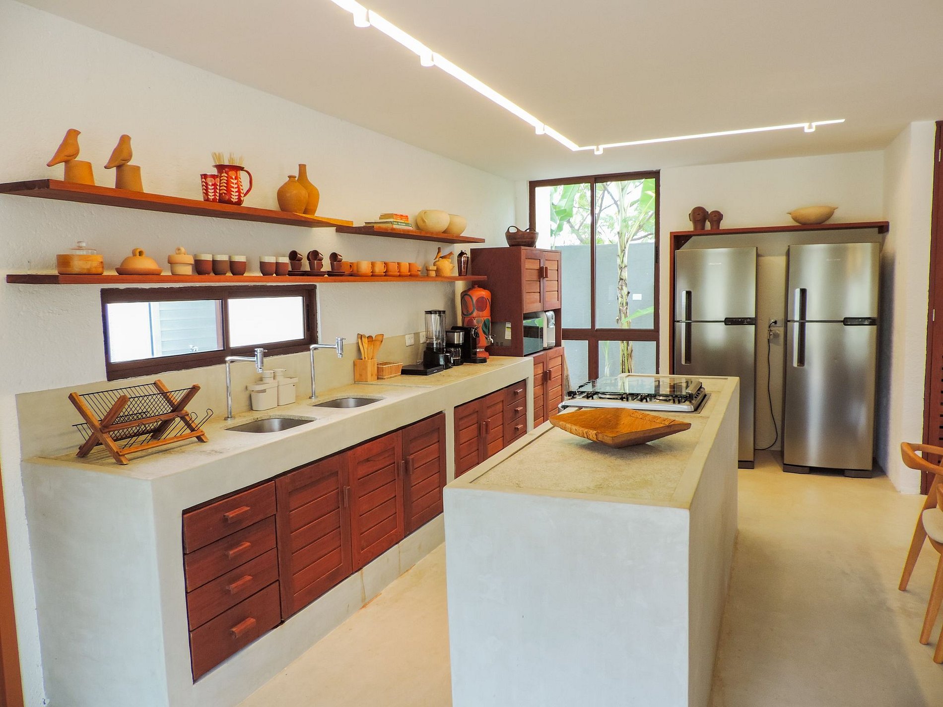 Cozinha completa com duas geladeiras e cervejeira.