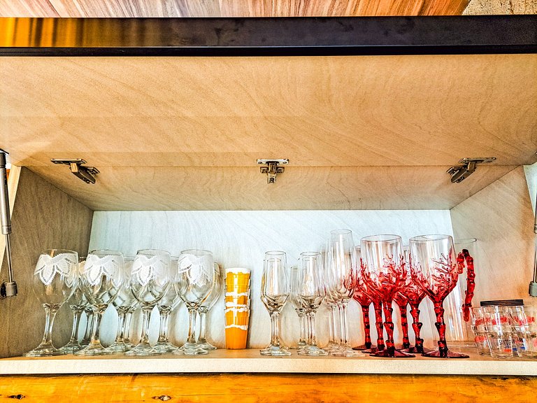 Cozinha completa com utensílos de ótima qualidade, convida você a explorar seu talento culinário e preparar refeições deliciosas.