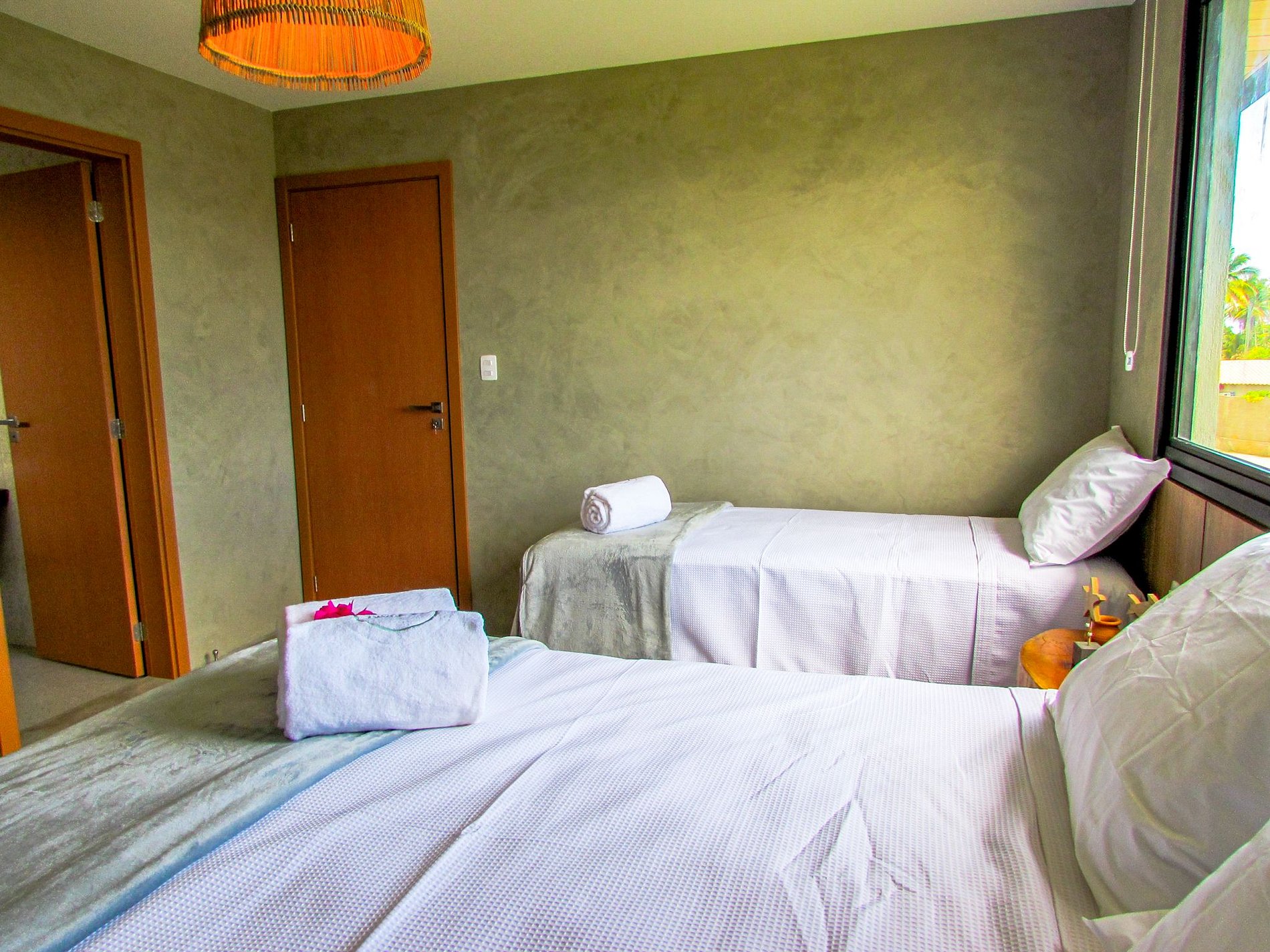 - 03 com cama queen e cama de solteiro com auxiliar;