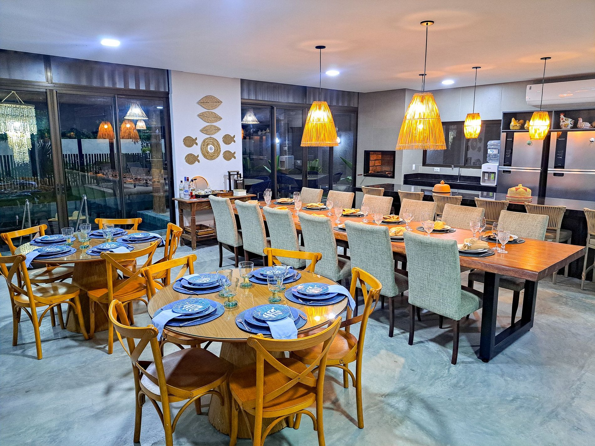 Com 06 suítes espaçosas, sendo 02 no térreo e 04 no primeiro andar, a Casa Veluna acomoda confortavelmente até 21 pessoas em camas. Perfeita para grandes grupos, ela combina conforto e lazer em cada detalhe: